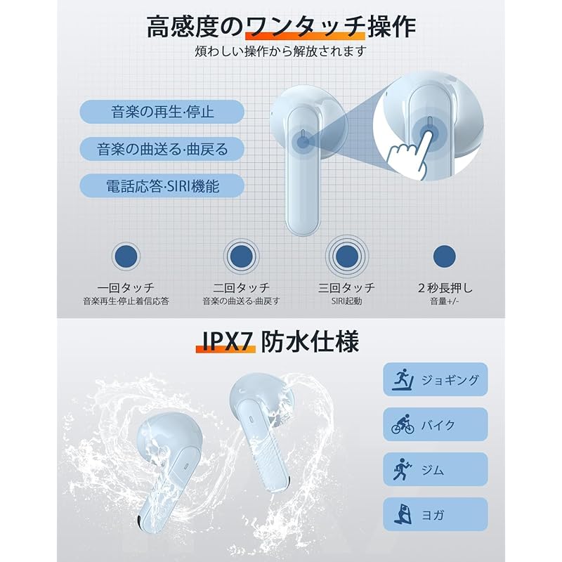 [Equipped with touch sensor / Easy operation / Excellent wearing comfort] 🔰Compared to the complicated operation buttons of commercially available earphones, our earphones can play music / pause / forward / backward / receive / reject calls / SIRI with one touch while still attached to your ears.You can easily operate the earphones (voice guidance), etc., and you can do it all with one finger without having to take out your smartphone even when you are busy with online meetings, driving, housework, package delivery, etc.👂Furthermore, we understand that there are some people who don't like canal-type earphones, so we designed an inner-ear type earphone, which has a better spread of sound from the midrange to the high frequency range than the canal type earphones, so you can enjoy refreshing sound quality and feel less pressure on your ears.They don't waver and don't cause any fatigue to your ears even after long periods of use, so if you can't always find an earpiece that fits your ears, give them a try.