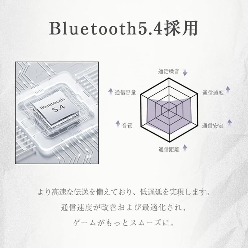 [Оснащен новейшим чипом Bluetooth 5.4] Это идеальный продукт для тех, кто хочет с комфортом наслаждаться музыкой и звонками. Благодаря новейшему стандарту Bluetooth 5.4 соединение становится чрезвычайно стабильным, а скачков и прерываний становится меньше, что обеспечивает плавное воспроизведение музыки и звонки. Кроме того, он эффективно подавляет задержку звука и обеспечивает удобство использования. Оснащен независимыми левым и правым чипами связи, его можно легко использовать как одним ухом, так и обоими ушами одновременно, что делает его удобным для использования любым ухом.