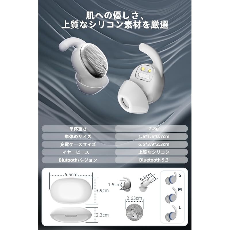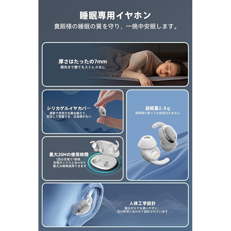 [Легкий дизайн и ультратонкий] Конструкция наушника для сна подходит для азиатского строения уха. Каждый наушник весит всего 2,7 г и имеет толщину 6,5 мм, с компактной и ультратонкой концепцией дизайна, обеспечивающей плотное прилегание и удобный размер. Когда ситуация меняется, ваши уши не будут испытывать давления от наушников и не будут болеть.