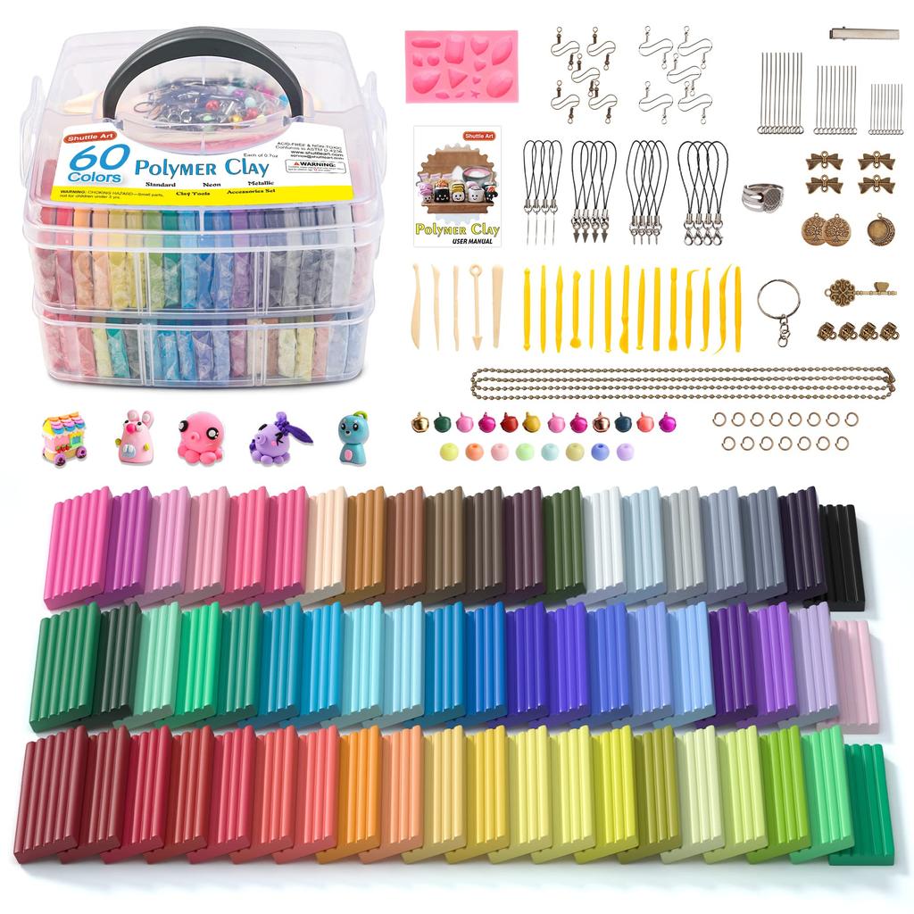 Этот удивительный набор полимерной глины состоит из 60 цветов, включая все часто используемые цвета в повседневной жизни.. Он сохраняет свою яркость даже после выпечки, позволяя вам пробовать различные цветовые сочетания.. Широкий выбор из 19 инструментов для лепки позволяет легко создавать детализированные формы для удовлетворения ваших различных потребностей, а также в набор входят 16 аксессуаров для поддержки более креативных поделок.. Эта безопасная и нетоксичная глина для запекания в духовке является образовательным инструментом, который поможет развить воображение, концентрацию, креативность и чувство цвета вашего ребенка.. Взрослые также могут расслабиться и снять стресс, изготавливая глину вручную.
