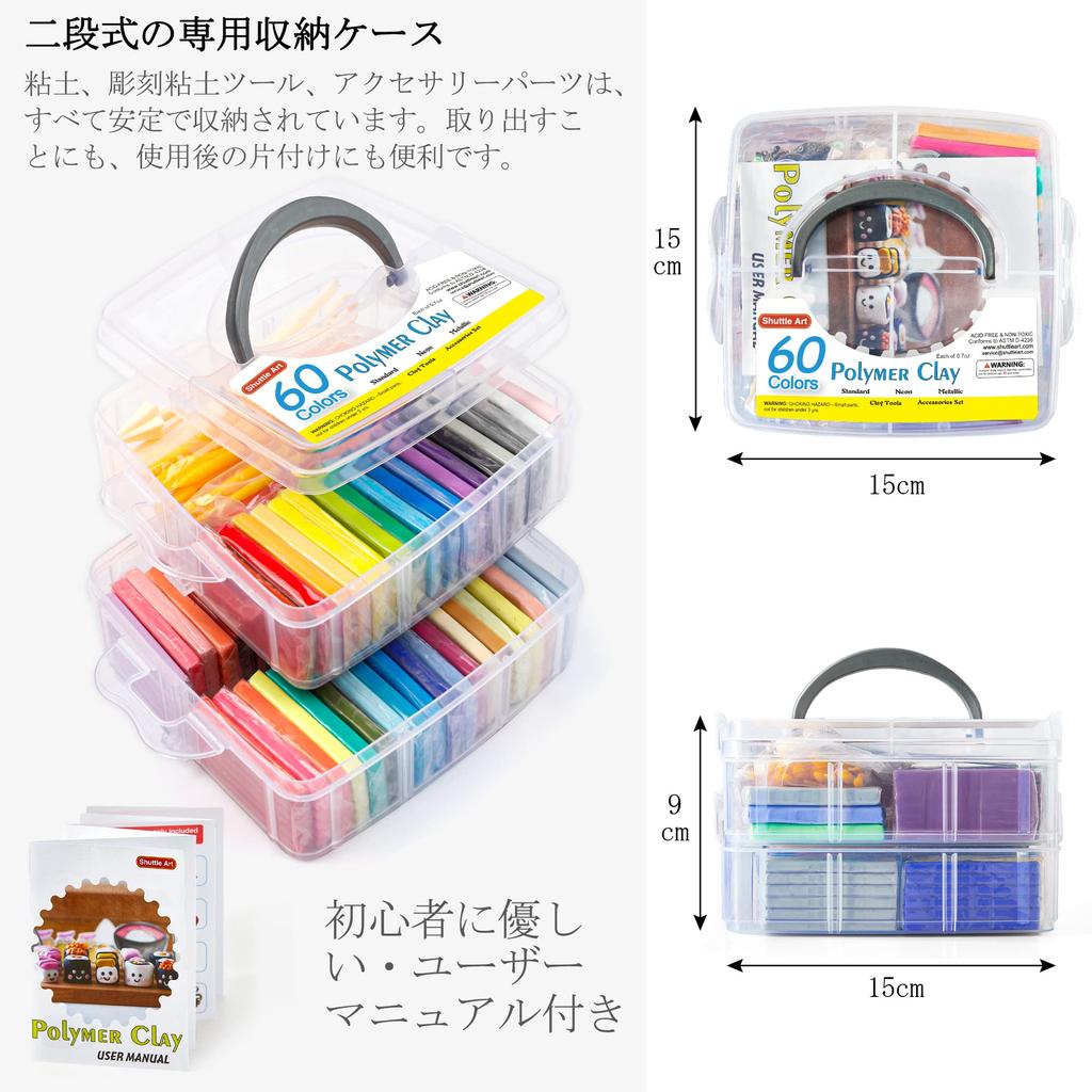 [Большое количество инструментов и аксессуаров] 19 инструментов для лепки из глины самых разных типов и простых в изготовлении прекрасных форм помогут вам легко воплотить в жизнь свое вдохновение в соответствии с различными потребностями.. В дополнение к руководству пользователя, в набор также входят 16 аксессуаров, таких как бусины, крючки для серег, держатели для колец, прессы в форме украшений и иглы трех размеров.. Вся глина и инструменты хранятся в двухъярусном специальном кейсе, что позволяет легко доставать необходимые инструменты и аксессуары во время работы и удобно убирать после использования.