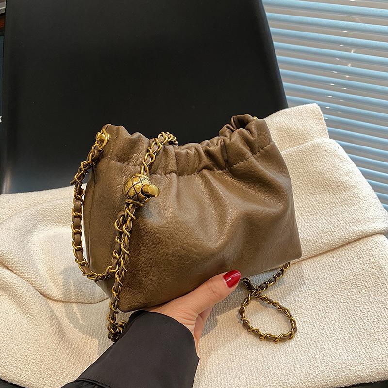 Простая плиссированная сумка подмышкой для женщин, универсальные ретро-сумки в корейском стиле, элегантные сумки через плечо, сумка-ведро на одно плечо с цепочкой-перекидкой