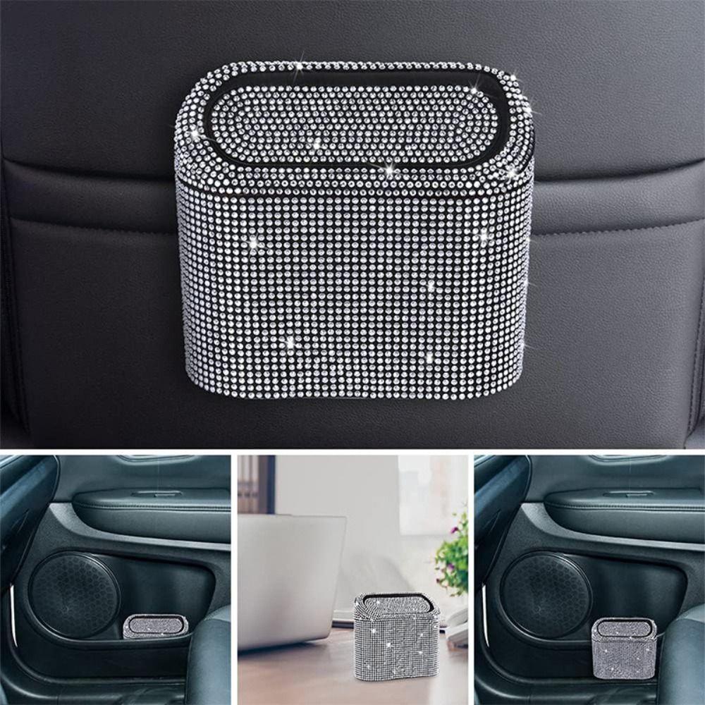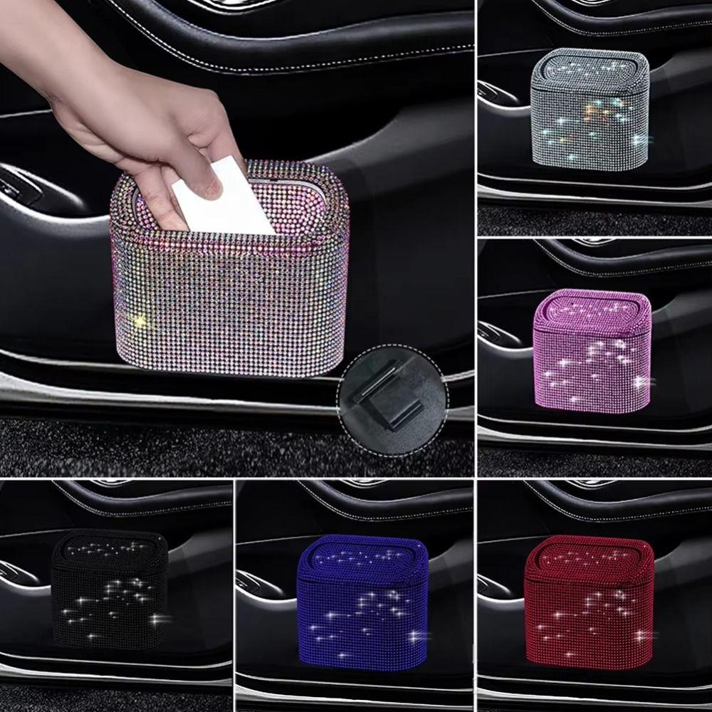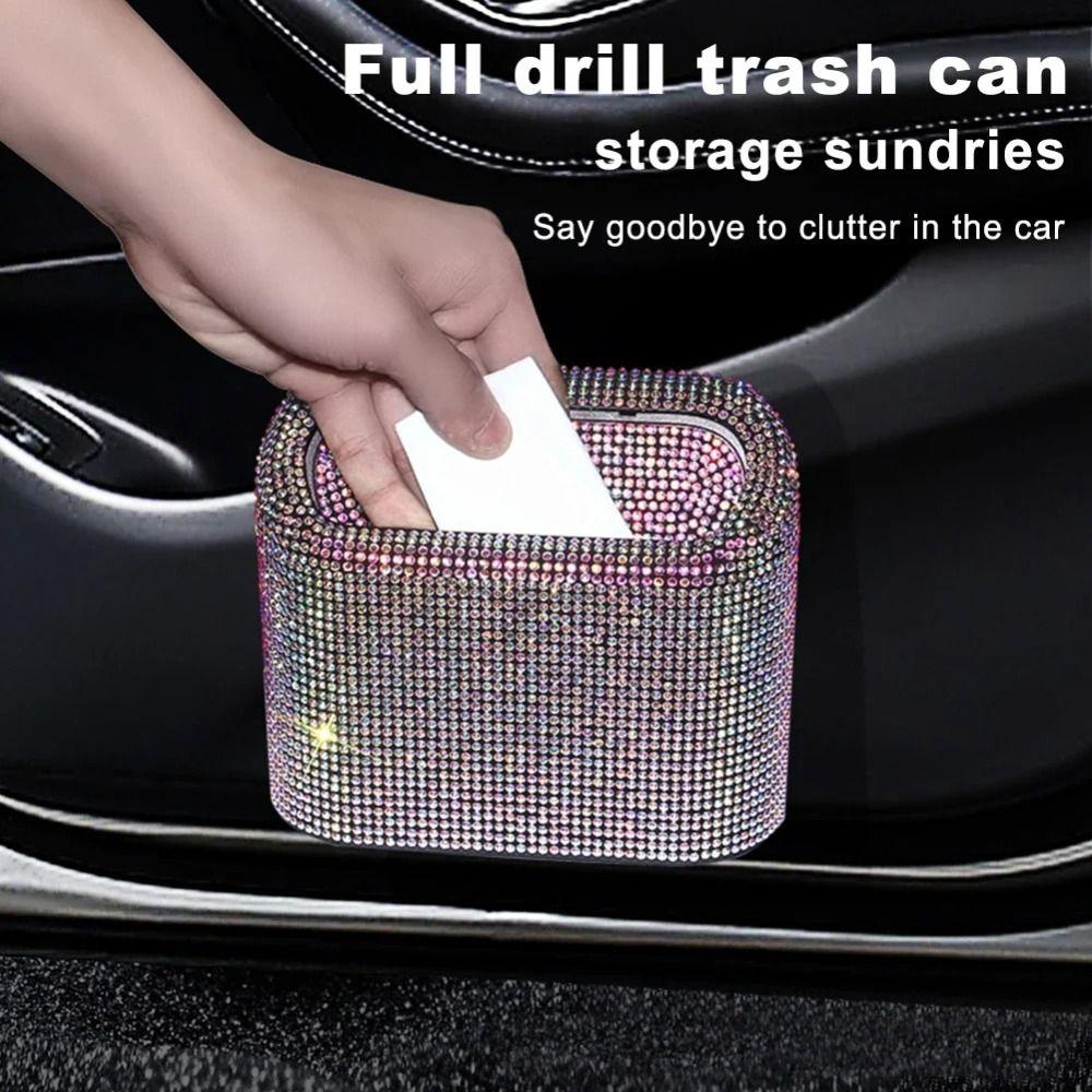 Мусорное ведро для автомобиля со стразами с крышкой, мусорный бак, блестящее мусорное ведро для автомобиля, аксессуары для салона автомобиля