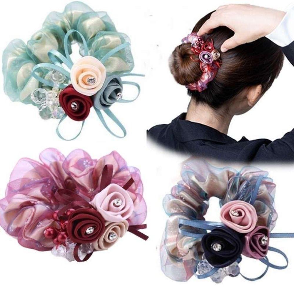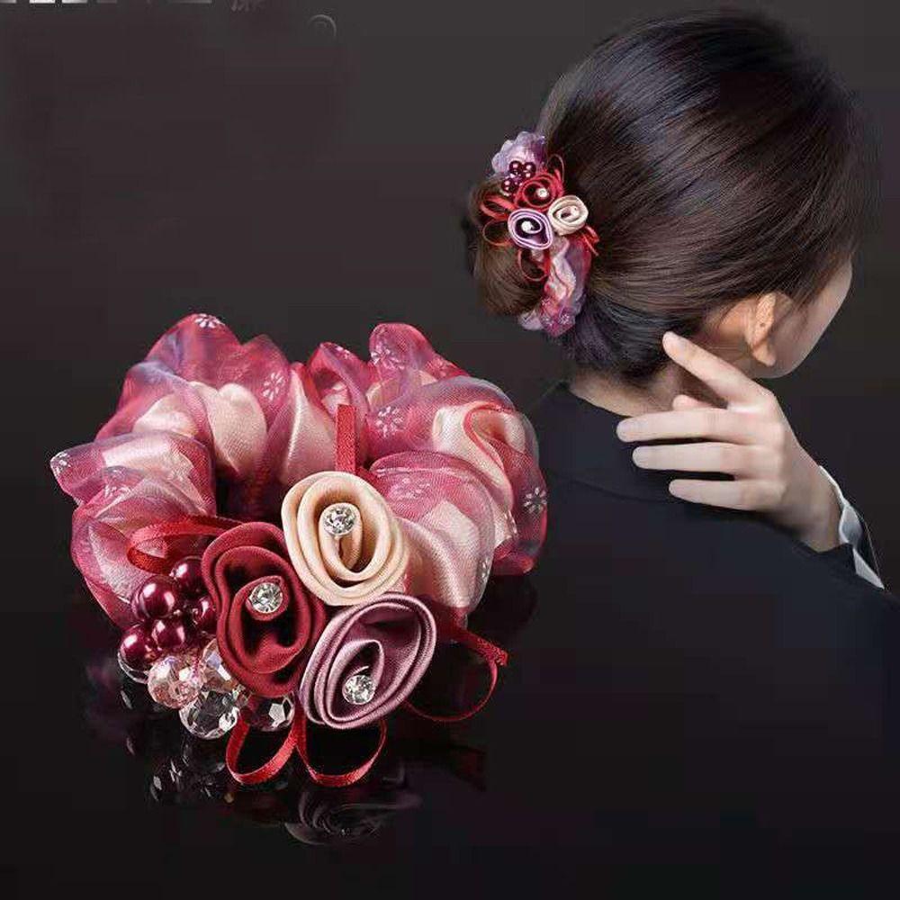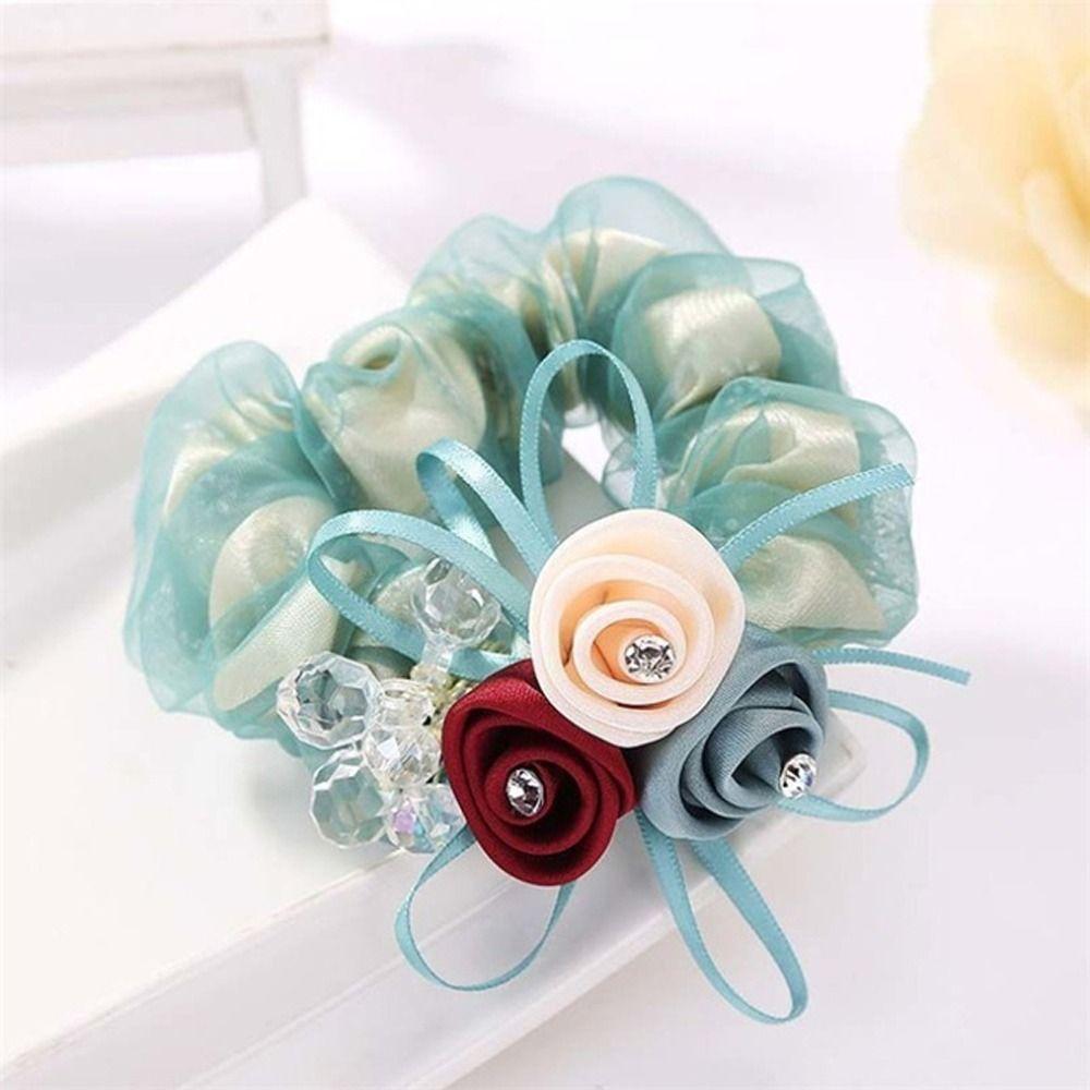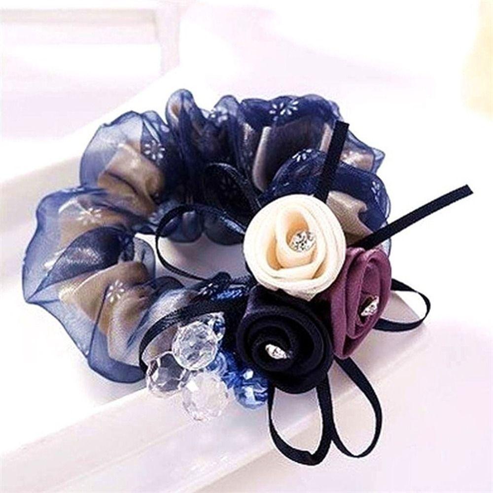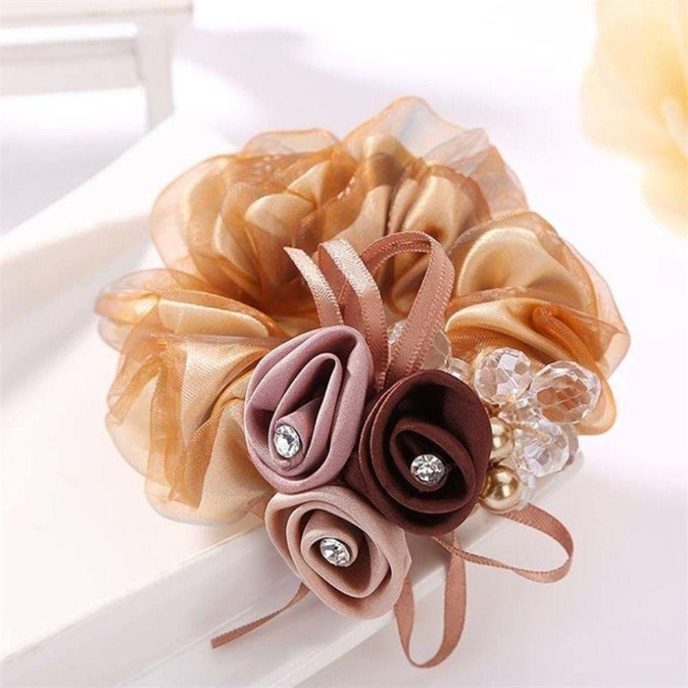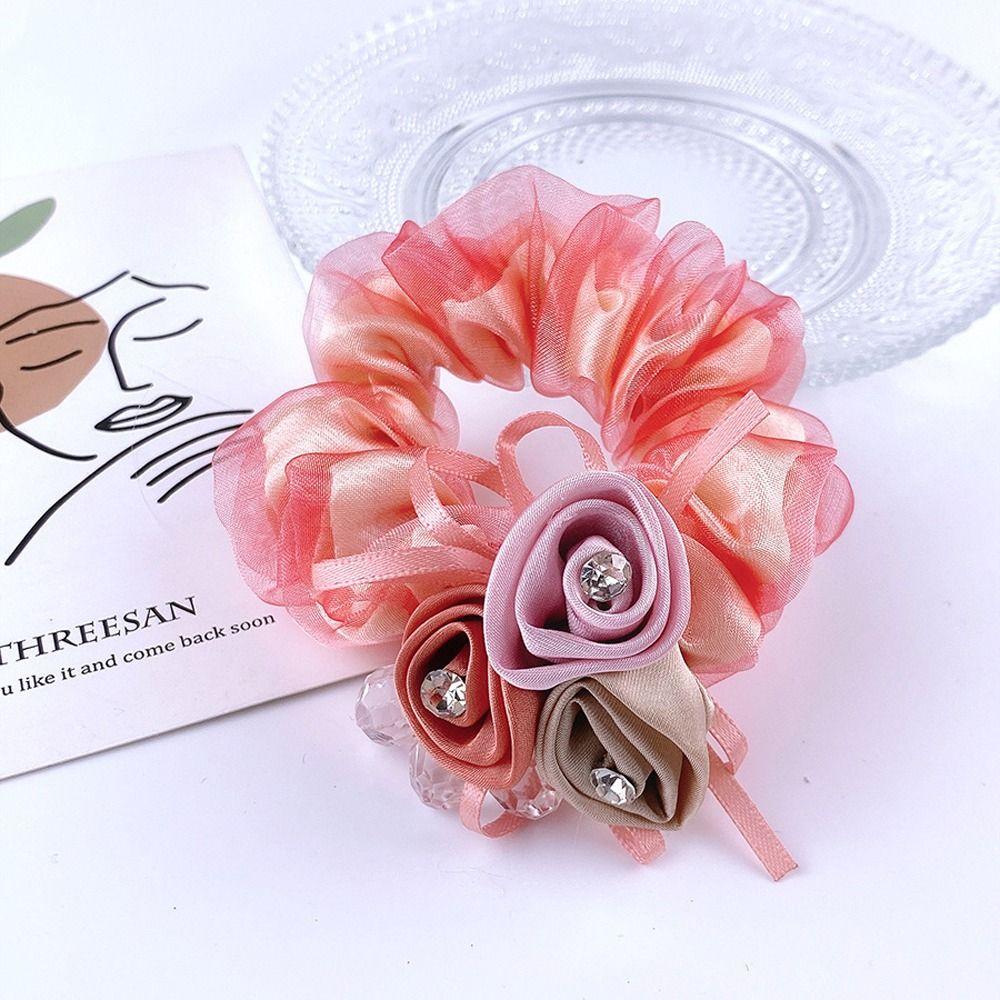 Hair Rope Pearl New Headwear Flower Mesh Scrunchies Women Hair Ties Double Layer Hair Rubber Bands