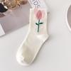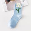 Женские носки конфетного цвета с рисунком тюльпана, носки средней длины для женщин