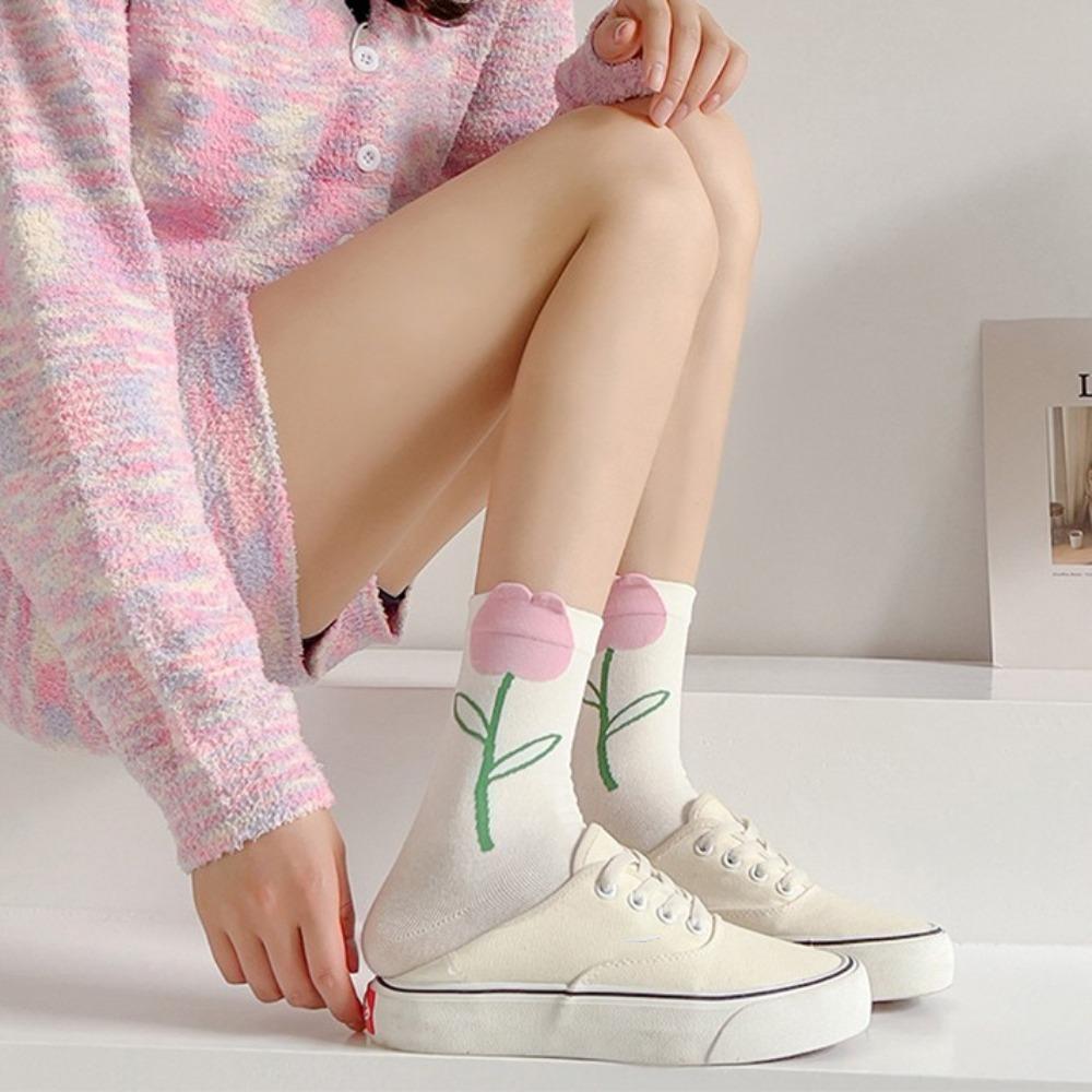 Женские носки конфетного цвета с рисунком тюльпана, носки средней длины для женщин — купить товар онлайн с бесплатной доставкой по всему миру!