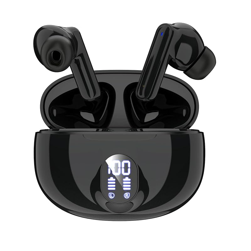 [Отображение оставшегося заряда и длительное воспроизведение музыки] Светодиодный дисплей позволяет легко проверить оставшийся заряд зарядного футляра и наушников. Он интуитивно понятен, не нужно угадывать количество электричества в наушниках. Примечание: Когда вы поместите наушники обратно в отсек для наушников, они автоматически зарядятся, а светодиодный дисплей будет мигать во время зарядки. Когда наушники полностью заряжены, светодиодный дисплей на корпусе наушников автоматически выключится. Когда наушники полностью заряжены, вы можете разговаривать или слушать музыку до 6 часов непрерывно. Когда отсек для наушников полностью заряжен, наушники можно зарядить примерно 5 раз, что в общей сложности обеспечивает около 36 часов воспроизведения музыки.(*Время воспроизведения зависит от громкости, воспроизводимого контента и условий использования.)