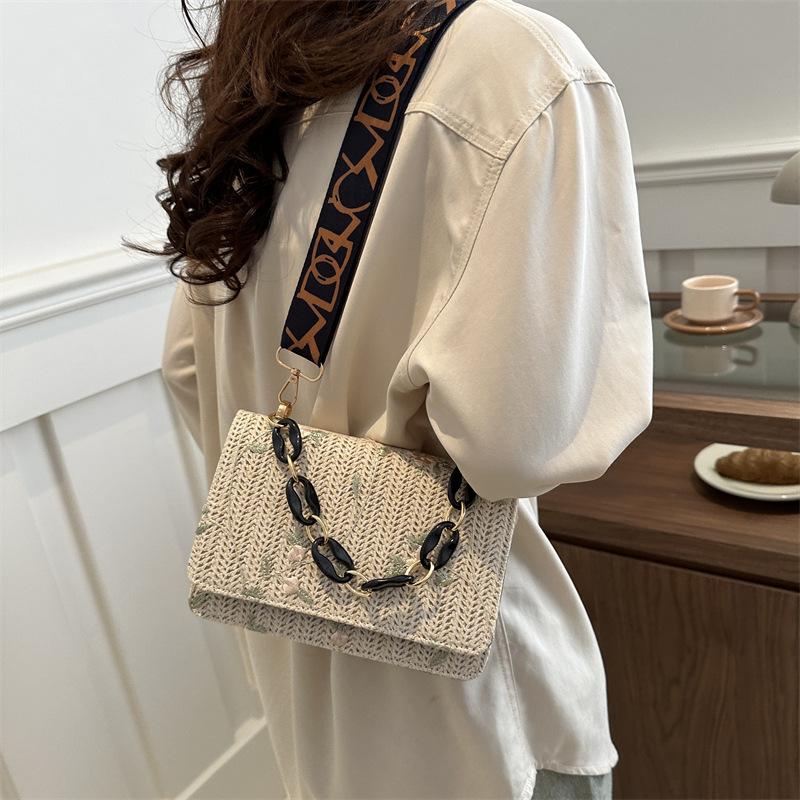 Yogodlns Модная плетеная сумка через плечо из травы, ручная работа, большая вместительная соломенная сумка, сумки из ротанга в стиле бохо для женщин