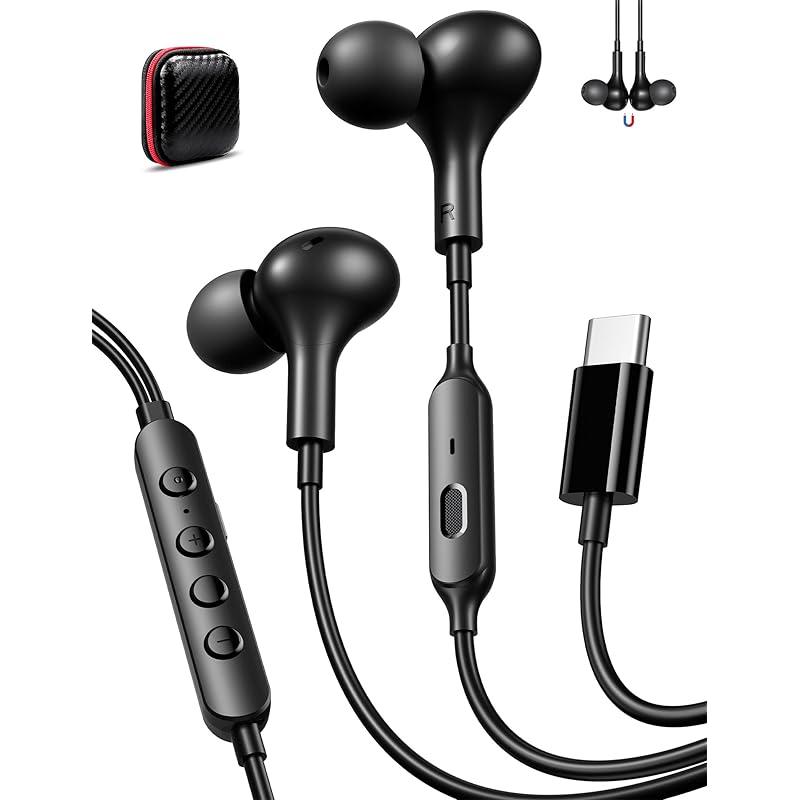 МАГНИТНЫЙ ДИЗАЙН И УДОБНОЕ НОШЕНИЕ: Встроенный сильный магнит на задней стороне наушников типа C надежно удерживает наушники на месте, их можно удобно носить на шее, когда они не используются, и можно носить с собой, не опасаясь запутаться при повседневном использовании. В то же время наушники-вкладыши спроектированы с учетом формы японского уха, поэтому они хорошо закрываются и поставляются с мягкими силиконовыми амбушюрами, которые можно выбрать из трех размеров.: S/M/L, что снижает вероятность их выпадения из ушей во время использования. Они аккуратно помещаются в ушах, устойчивы к поту и воде и не повредят ваши уши даже после длительного использования. Снижают стресс от длительного использования. Кроме того, в комплект входит водонепроницаемый футляр для хранения, в котором можно не только правильно хранить наушники Type-C, но и хранить небольшие предметы, такие как карты и ключи. Он также имеет функцию водонепроницаемости для повседневного использования. Идеальные наушники Type-C для работы, учебы, путешествий, сна, бега, поездок на работу, удаленной работы и других видов активного отдыха.