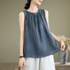 Новый летний свободный жилет из хлопка и льна с текстурой из рами в иностранном стиле, плиссированный повседневный универсальный топ без рукавов для женщин