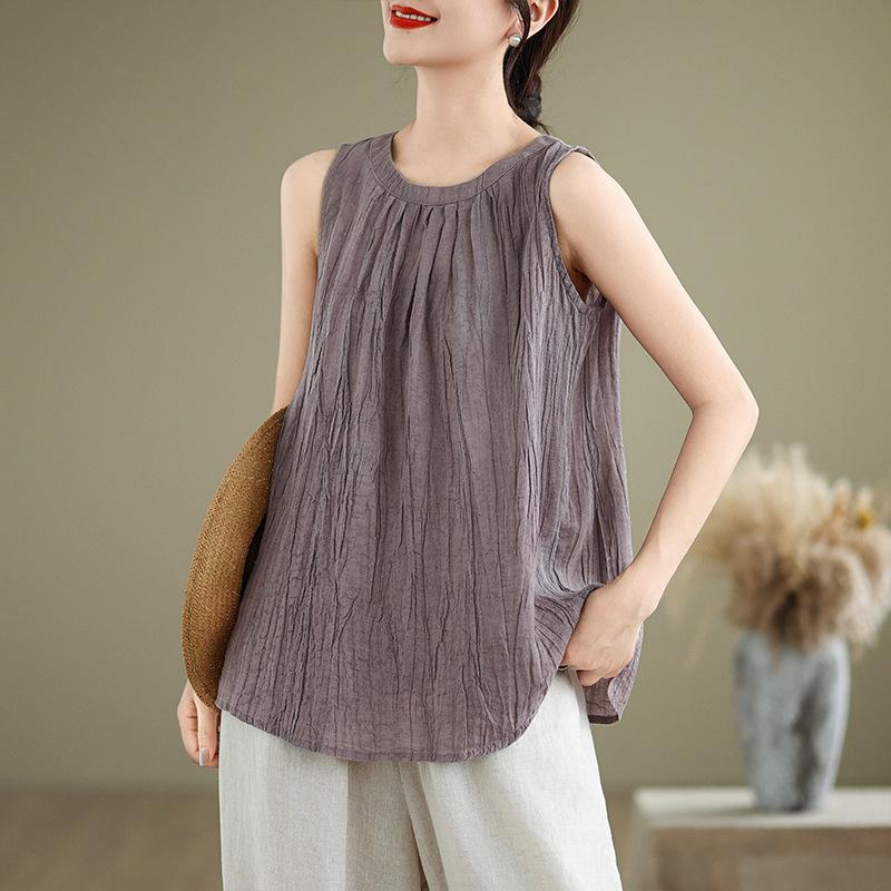 Новый летний свободный жилет из хлопка и льна с текстурой из рами в иностранном стиле, плиссированный повседневный универсальный топ без рукавов для женщин — купить товар онлайн с бесплатной доставкой по всему миру!