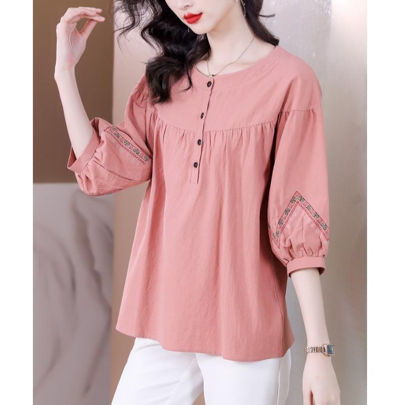 Летняя новая рубашка с короткими рукавами и застежкой на пять точек, свободная вышивка и тонкий повседневный свитер для мам среднего возраста