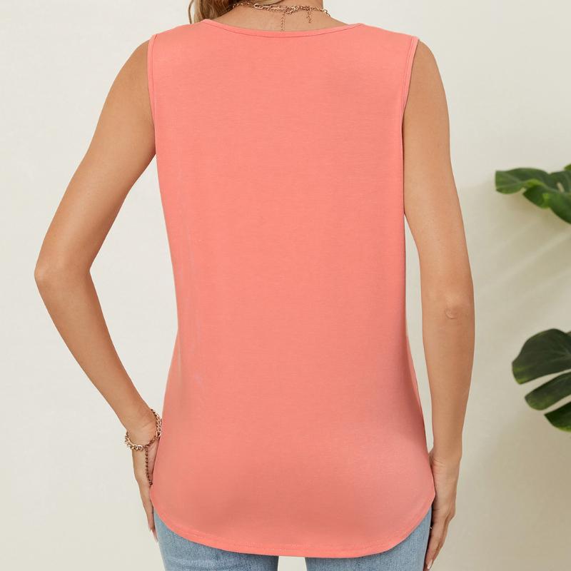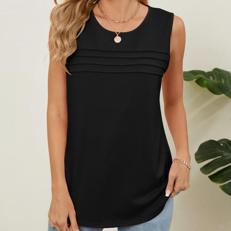 Весна и лето Новый однотонный круглый вырез свободный безрукавный жилет футболка