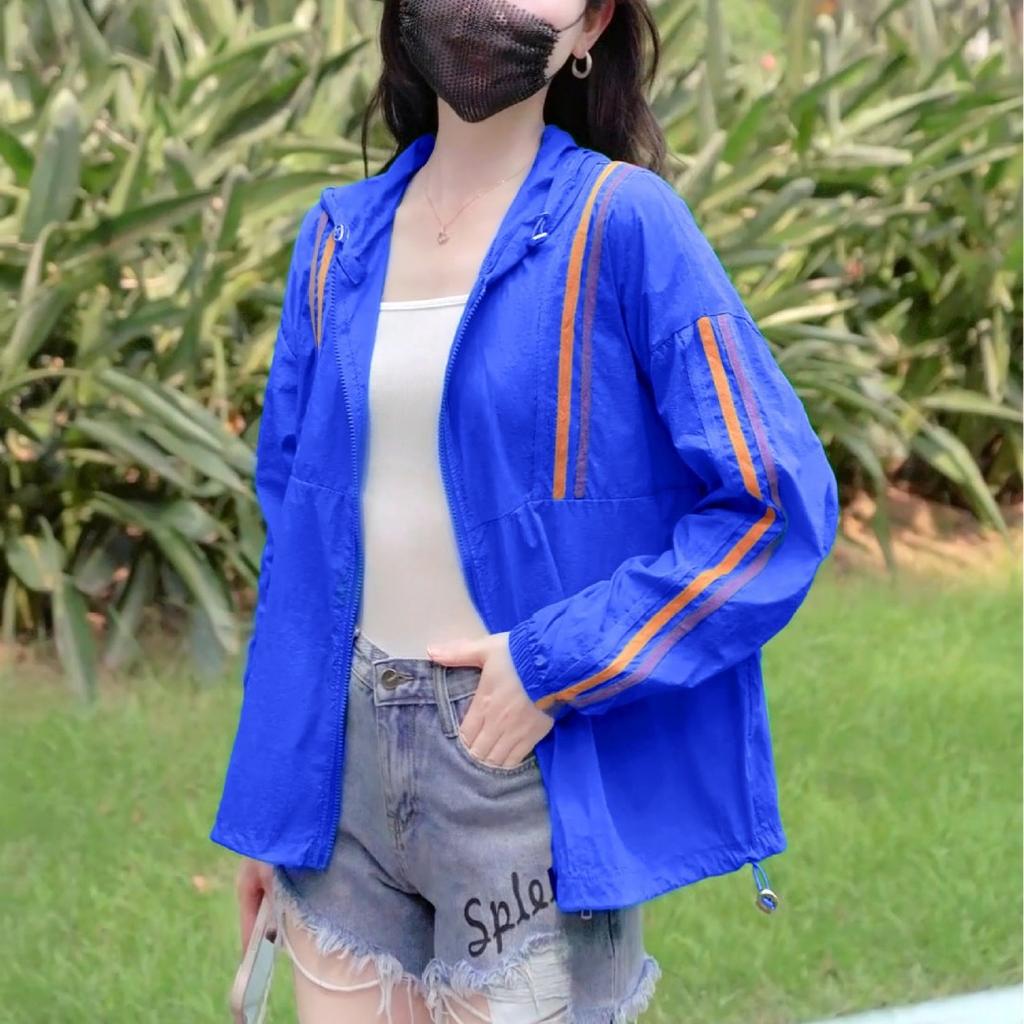 Повседневная универсальная контрастная цветная куртка с капюшоном и солнцезащитным экраном, летняя свободная дышащая куртка-кардиган