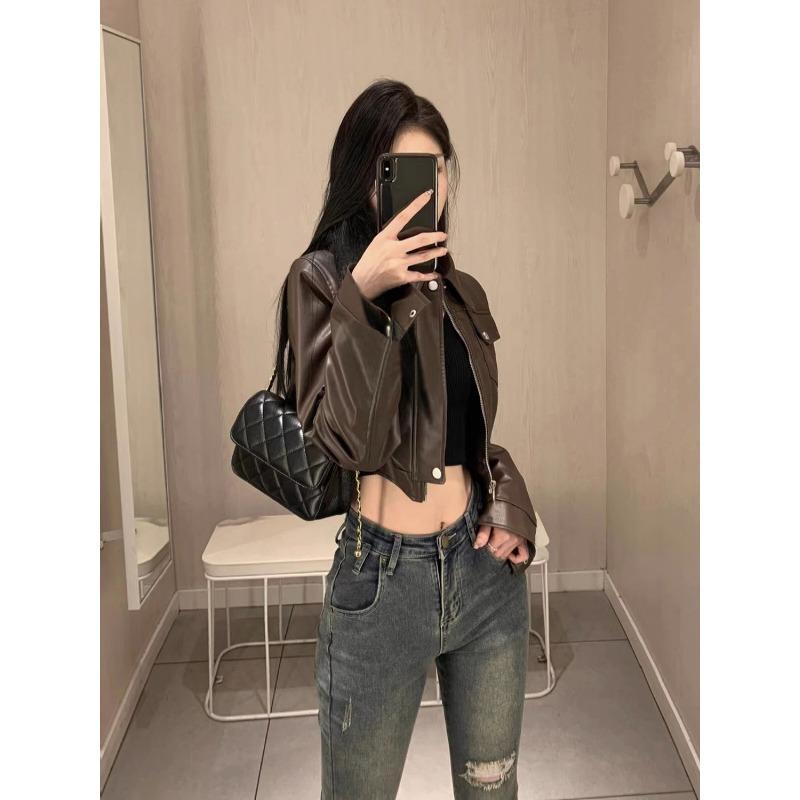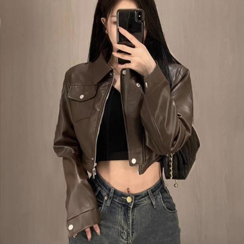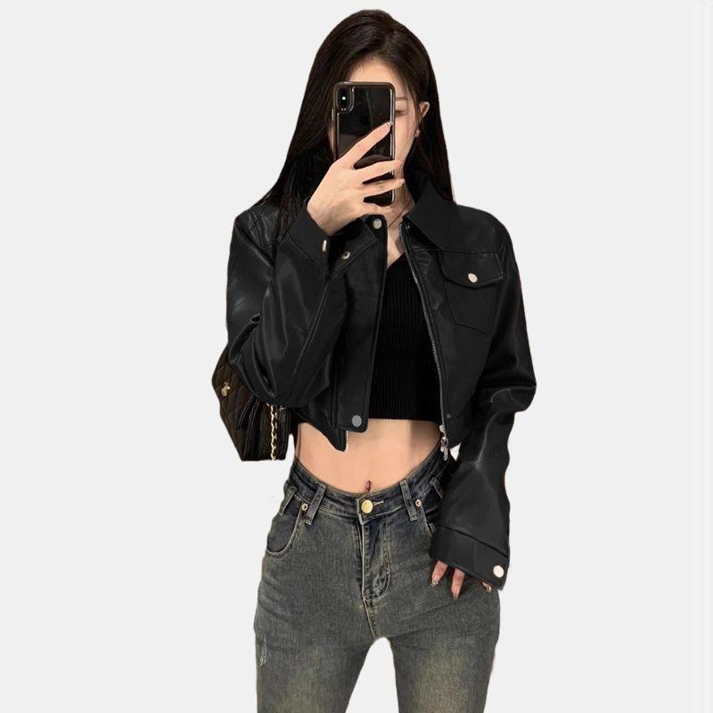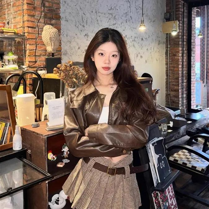 Короткая куртка из искусственной кожи в гонконгском стиле с ретро-дизайном мотоцикла для повседневной носки на весну/осень
