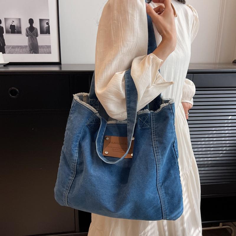 Джинсовая женская сумка через плечо, большая вместимость, сумка на одно плечо, повседневные модные сумки, студенческие, новые