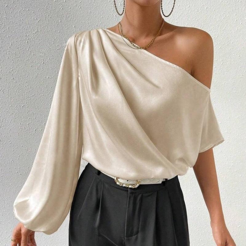 Сексуальные элегантные повседневные блузки с косым воротником и длинным рукавом, женские модные рубашки с открытыми плечами, топы, однотонные, простые, приталенные, женские блузки 26399 — купить товар онлайн с бесплатной доставкой по всему миру!