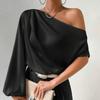 Сексуальные элегантные повседневные блузки с косым воротником и длинным рукавом, женские модные рубашки с открытыми плечами, топы, однотонные, простые, приталенные, женские блузки 26399
