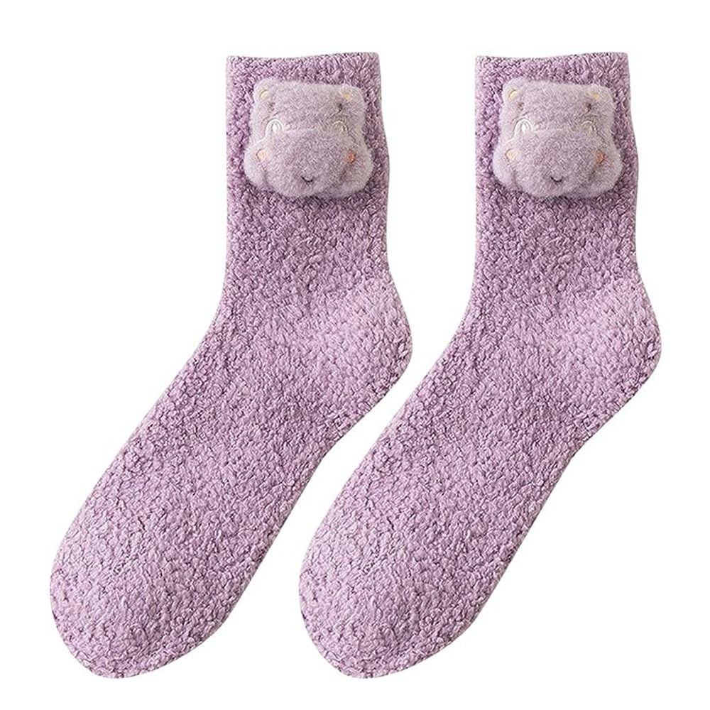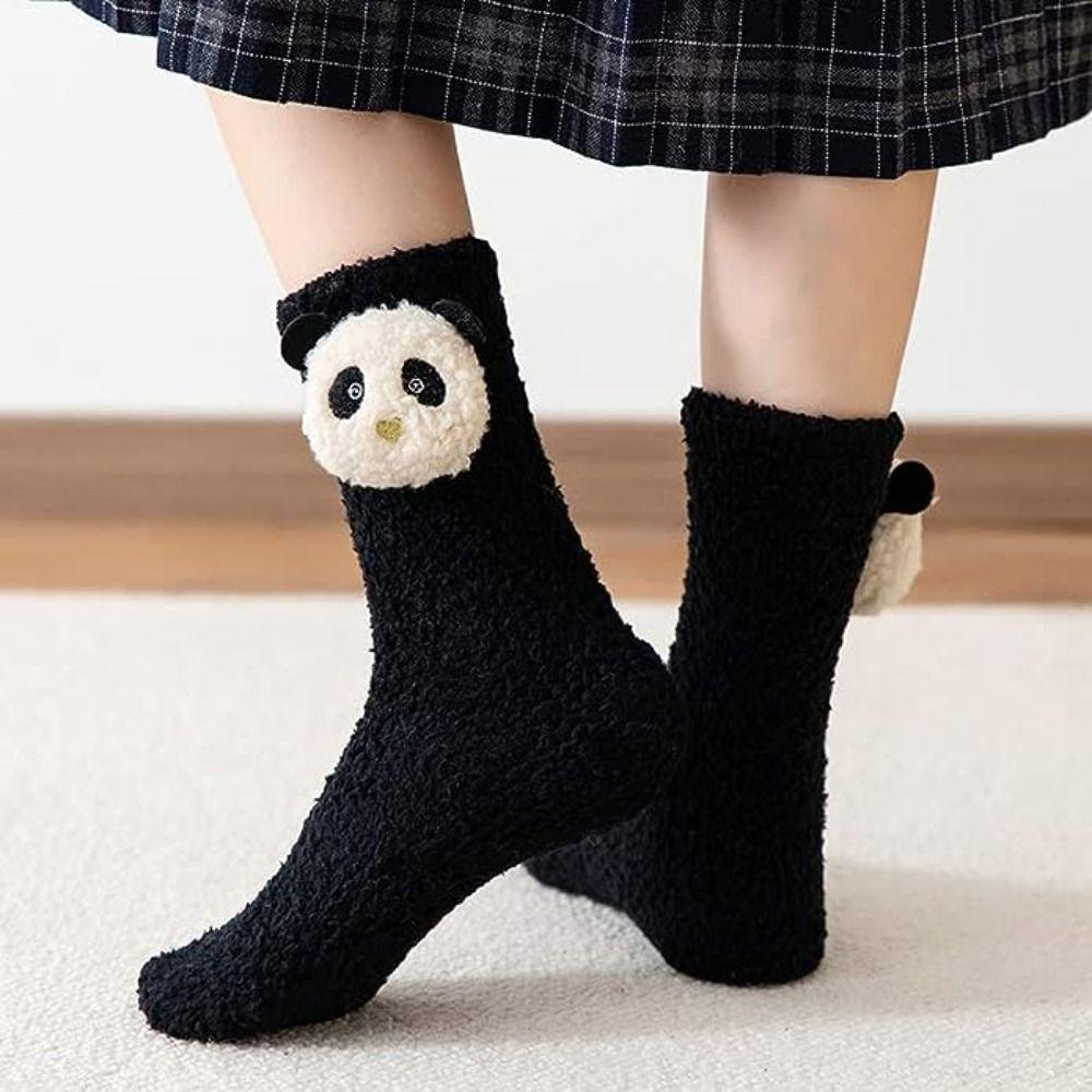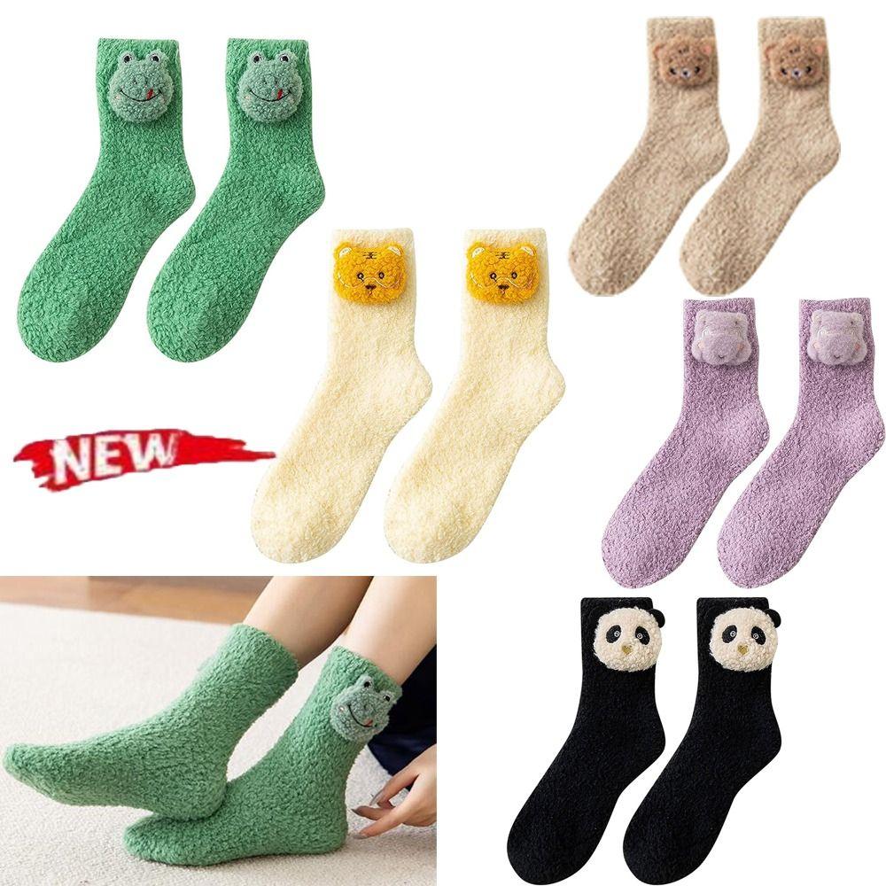 Мягкие коралловые флисовые носки с пушистыми животными, осенне-зимние носки-тапочки для женщин и девочек