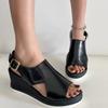 2025 Женская обувь с пряжкой на ремне, женские сандалии на платформе, повседневные сандалии, женские с круглым носком, высокие танкетки, большие размеры, римские туфли для женщин — купить товар онлайн с бесплатной доставкой по всему миру!