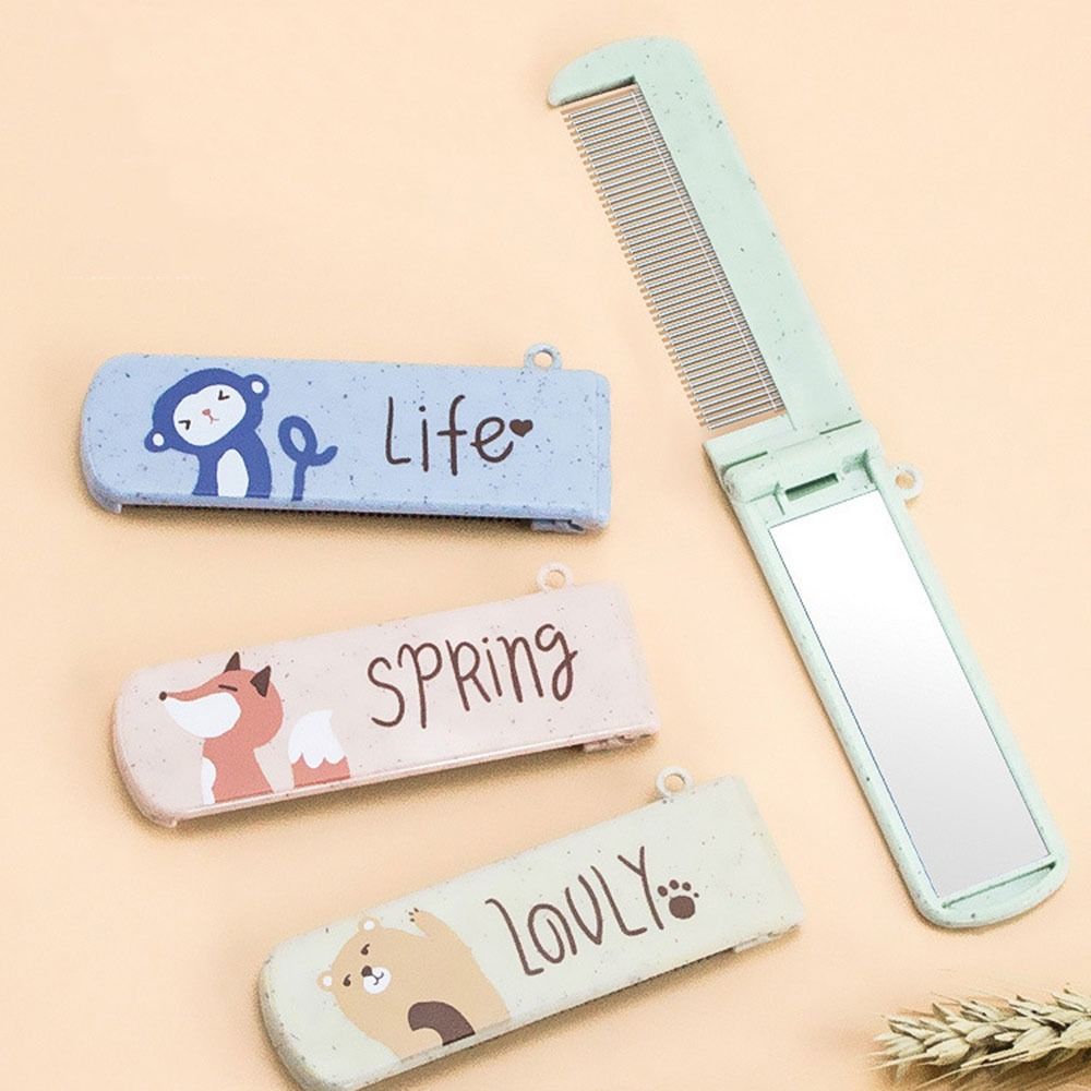 Милые животные мультфильм расческа пластиковая портативная расческа с зеркалом мини карманная щетка для волос студенты