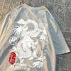 Футболка с забавным рисунком «Дракон Харадзюку» для мужчин, винтажные свободные хлопковые топы, летняя одежда для пар, простая футболка большого размера для женщин