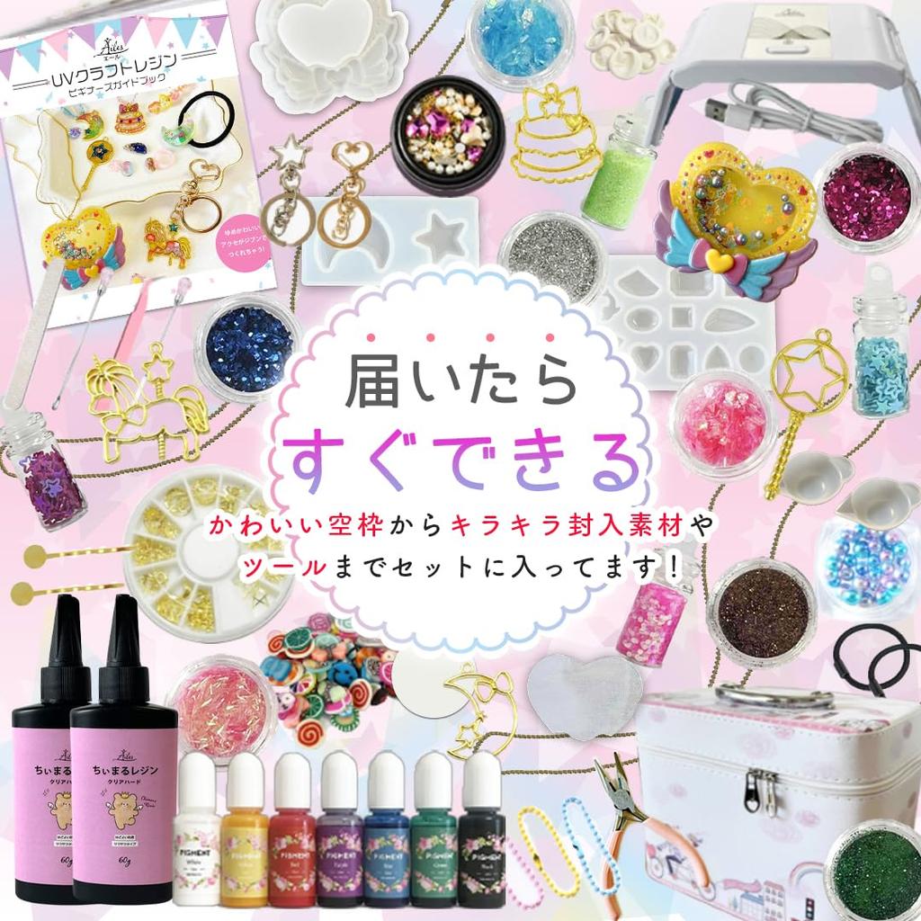 💜 [22 детали аксессуаров и 15 силиконовых форм] Содержит детали колец, ожерелий и сказочные пустые рамки, которые легко использовать детям, а также резинки для волос и брелоки, которые понравятся и взрослым. Силиконовые формы идеально подходят для изготовления аксессуаров, а из форм для ювелирных изделий можно сделать причудливые шейкеры ♪ Попробуйте сделать милые и сказочные шейкеры ♡