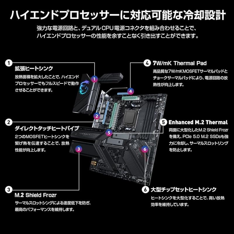 К особенностям относятся удлиненный радиатор с тепловой трубкой прямого контакта, термопрокладка MOSFET 7 Вт/мК и многое другое, обеспечивающее высокую охлаждающую способность для высокопроизводительной системы и непрерывного игрового процесса.