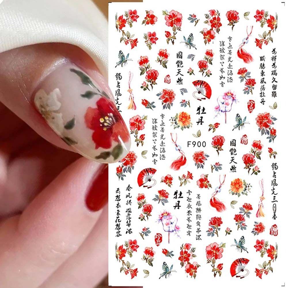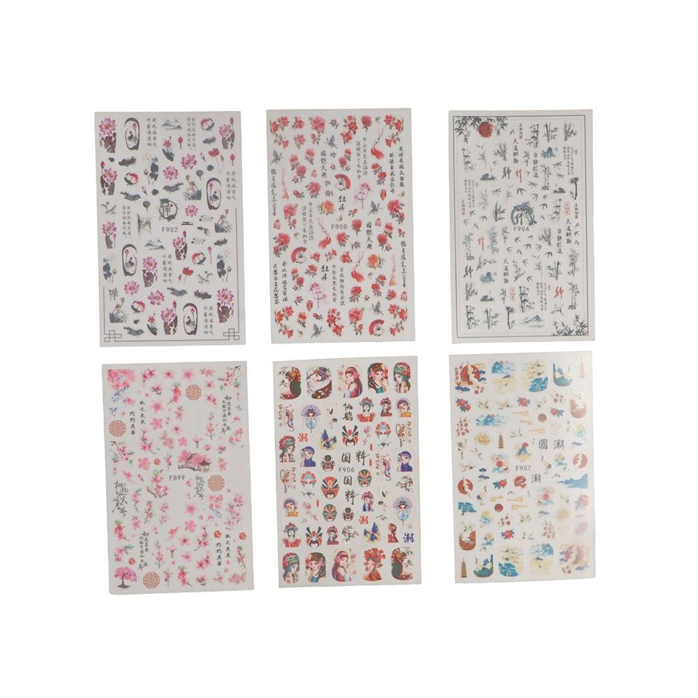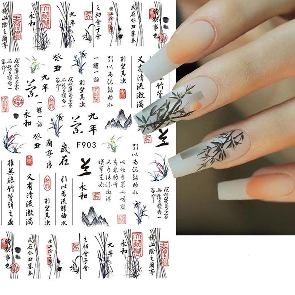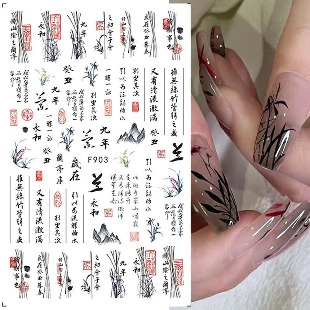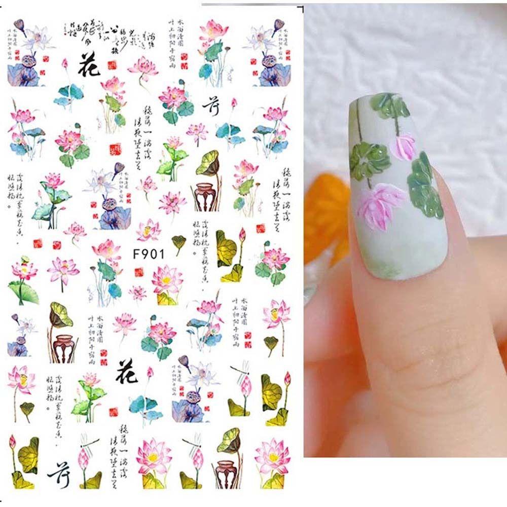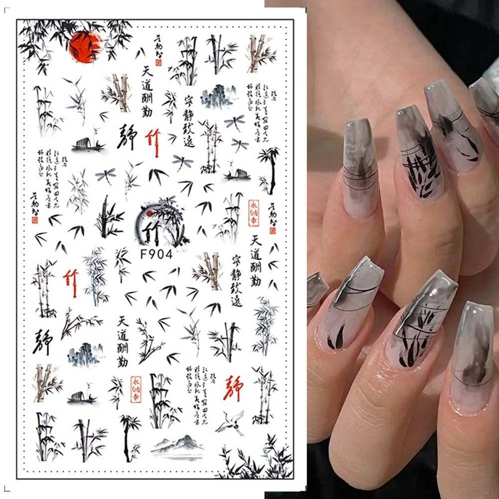 Lotus Chinese Nail Stickers Bamboo Nail Stickers Nail Art Decorations Flowers Nail Decals