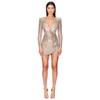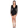 Летнее женское платье Французское платье с V-образным вырезом и длинными рукавами Платье с оборками на бедрах Платье с пайетками