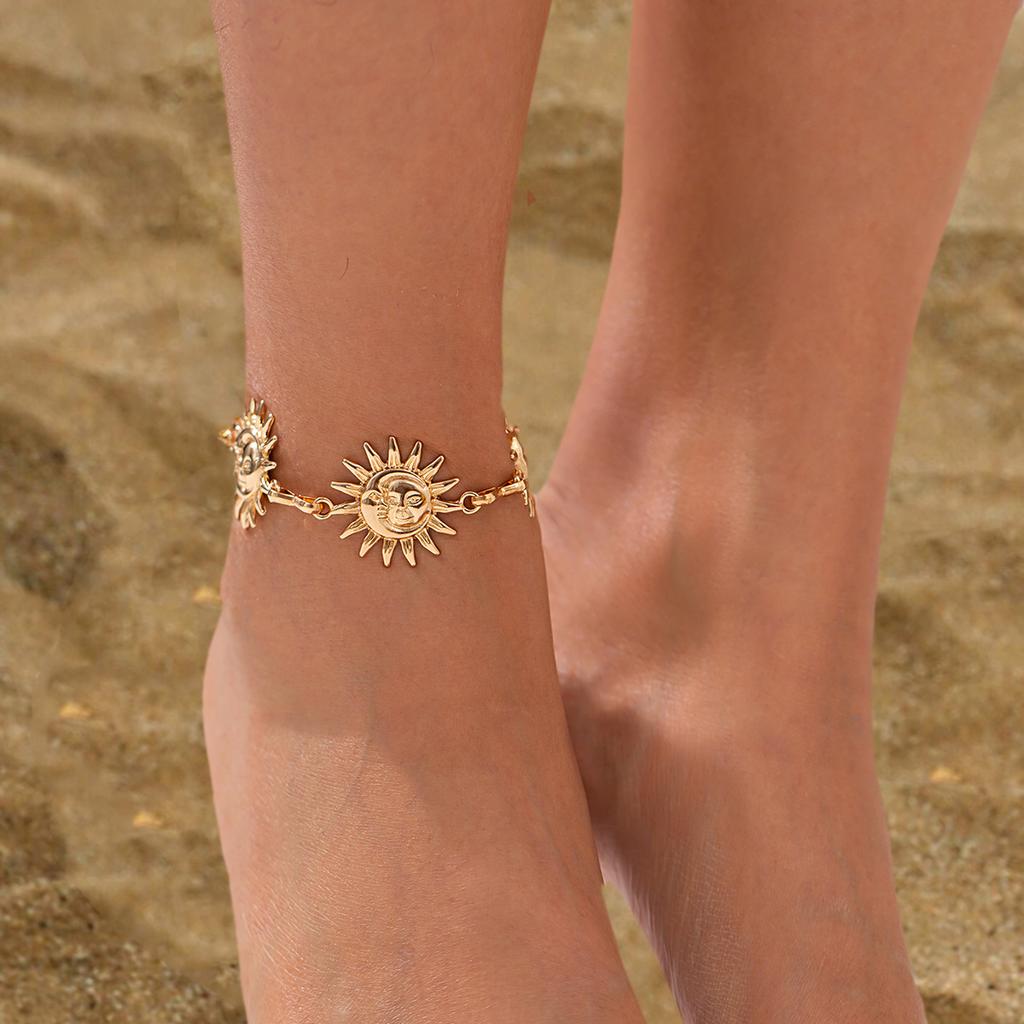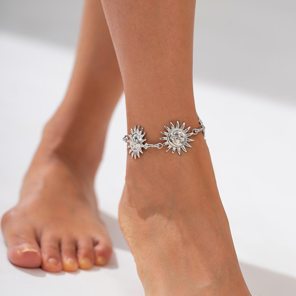Браслет на лодыжку ручной работы из металла с цепочкой в виде подсолнуха для женщин, летние пляжные сандалии, аксессуары для отдыха на босу ногу