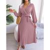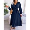 Женское элегантное плиссированное платье макси с V-образным вырезом и длинными рукавами