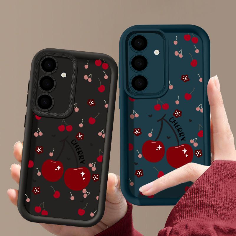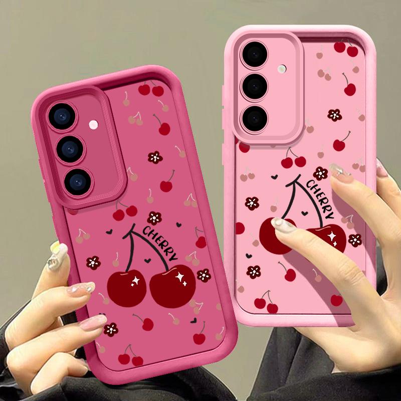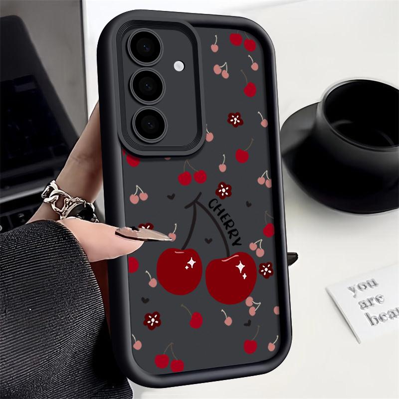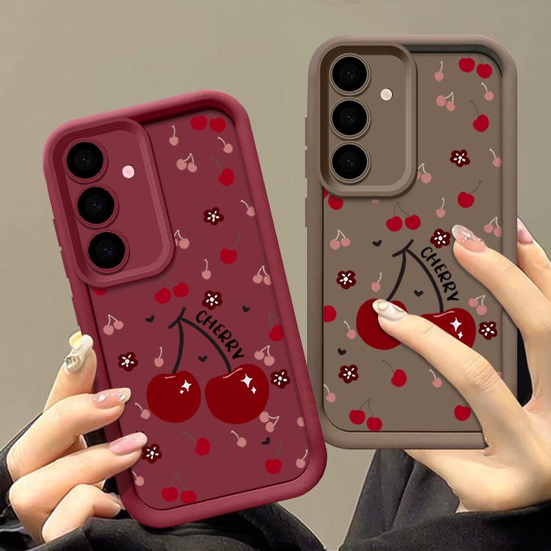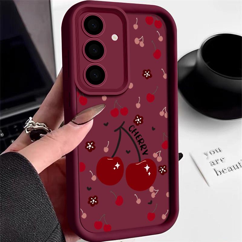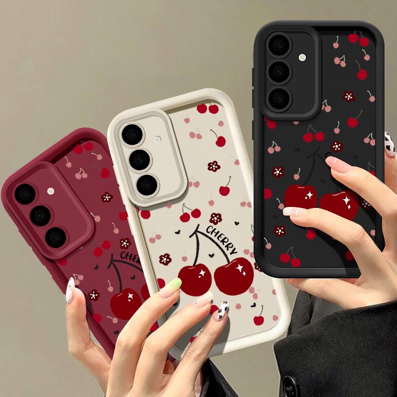 Красный вишневый принт защитный мягкий чехол для объектива Samsung S25 Ultra S24 FE S23 Plus A16 A56 A36 A55 A26 A06 A15 A35 A54 противоударный матовый чехол для телефона TPU