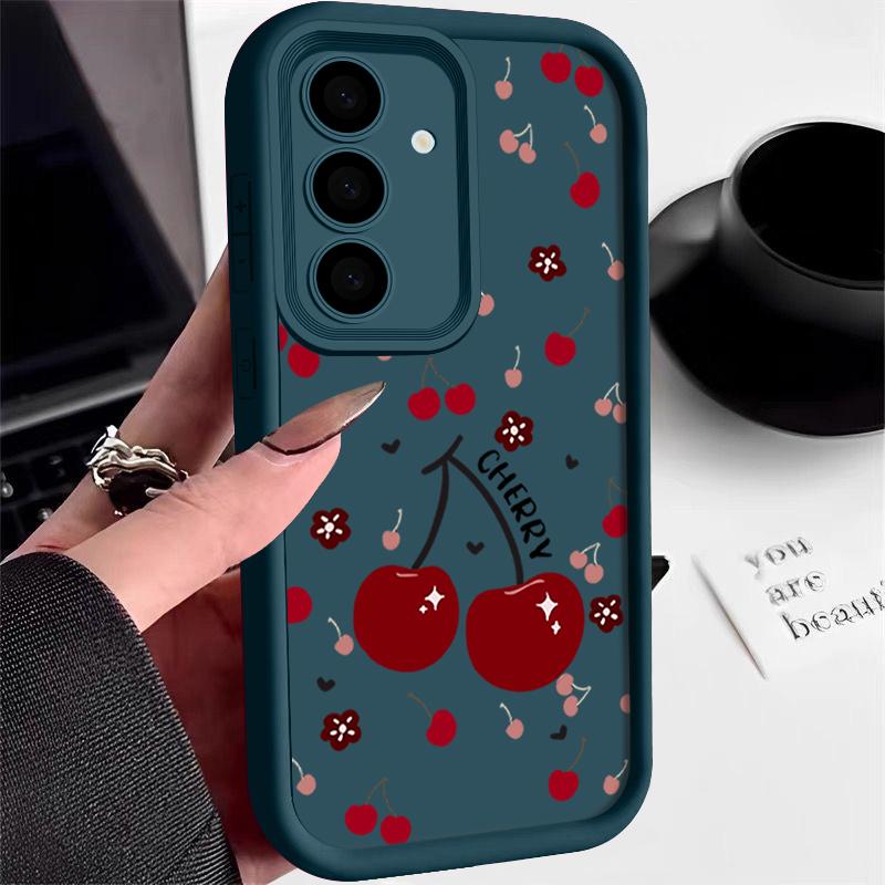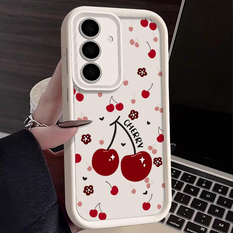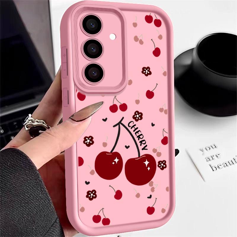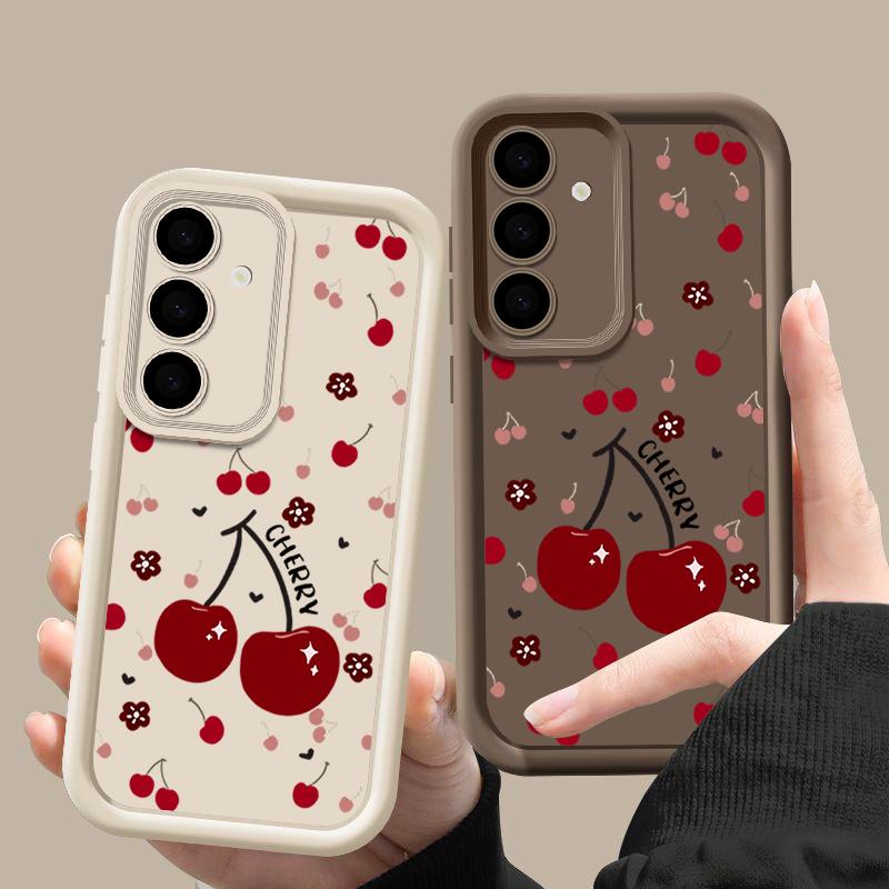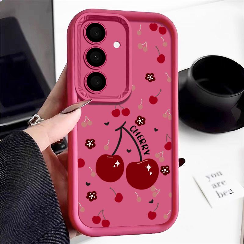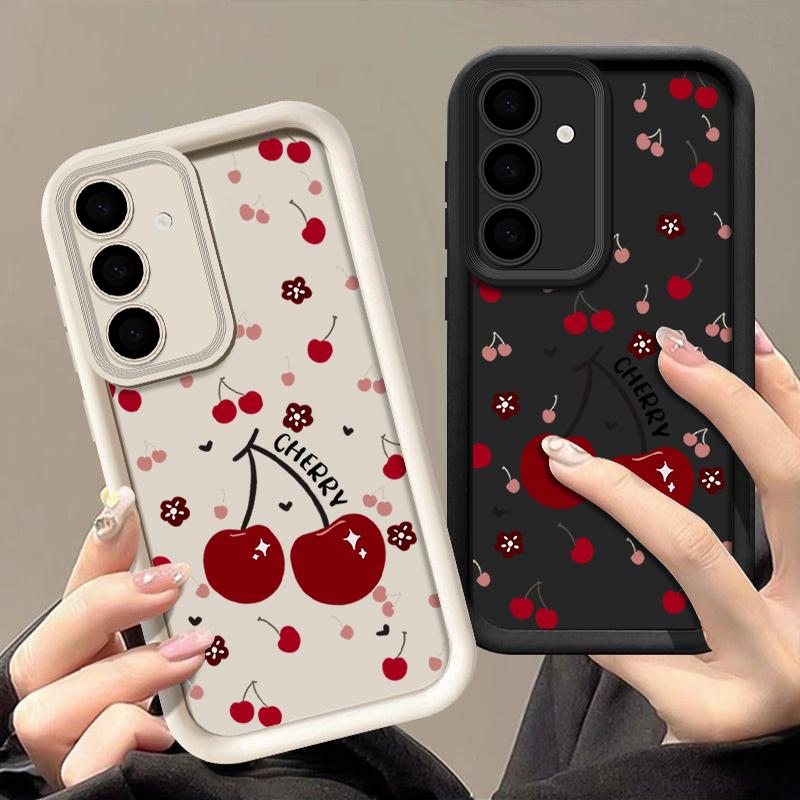 Красный вишневый принт защитный мягкий чехол для объектива Samsung S25 Ultra S24 FE S23 Plus A16 A56 A36 A55 A26 A06 A15 A35 A54 противоударный матовый чехол для телефона TPU