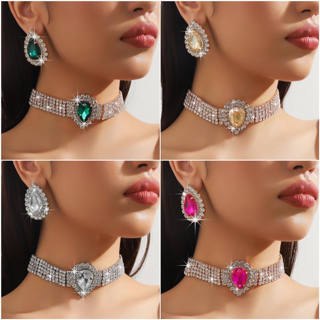Европейские и американские роскошные многослойные геометрические ожерелья-серьги, красочные ожерелья в форме капель воды, модные и преувеличенные ожерелья