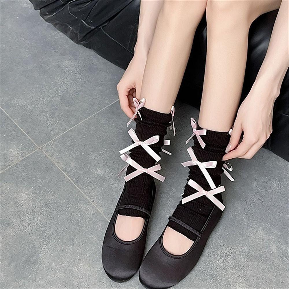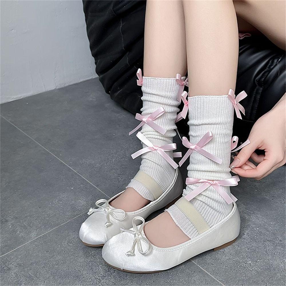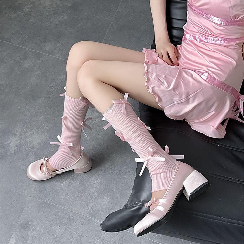 Теплые вязаные носки с бантом, чулки JK, милые носки гольфы в стиле Лолита для женщин и девушек