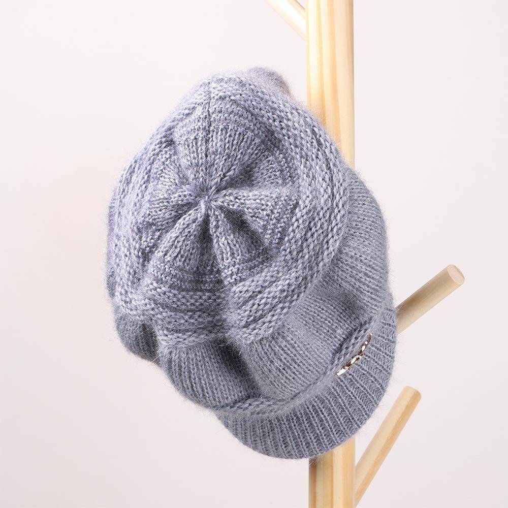 Однотонный зимний головной убор Ветрозащитная шерстяная шапка Шапка-ушанка Вязаная шапка Плюшевая шапка