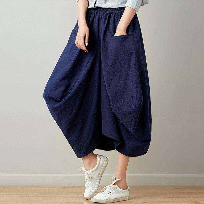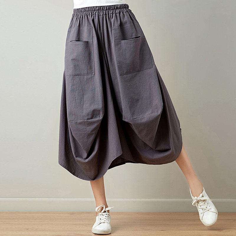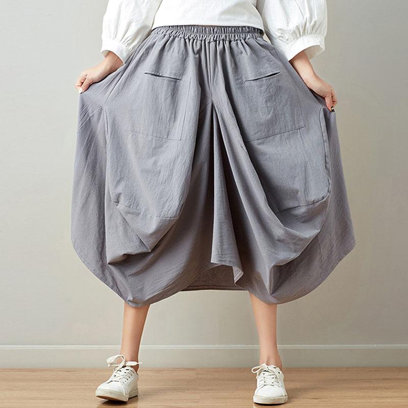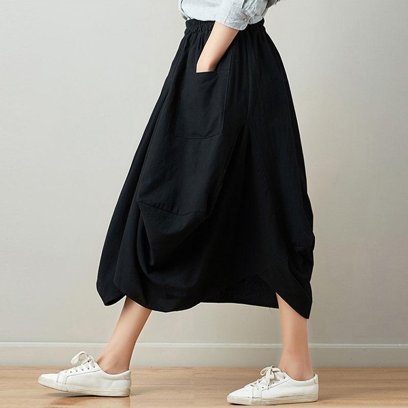 Летняя литературная свободная строчка однотонная хлопковая и льняная юбка с эластичной талией женская юбка-фонарик