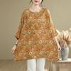 DIMANAF 2025 Summer T-Shirt Plus Size Women Flower Printing Batwing Sleeve Vintage Loose Tops Casual