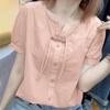 Женская летняя тонкая рубашка в китайском стиле с короткими рукавами, однотонная свободная блузка