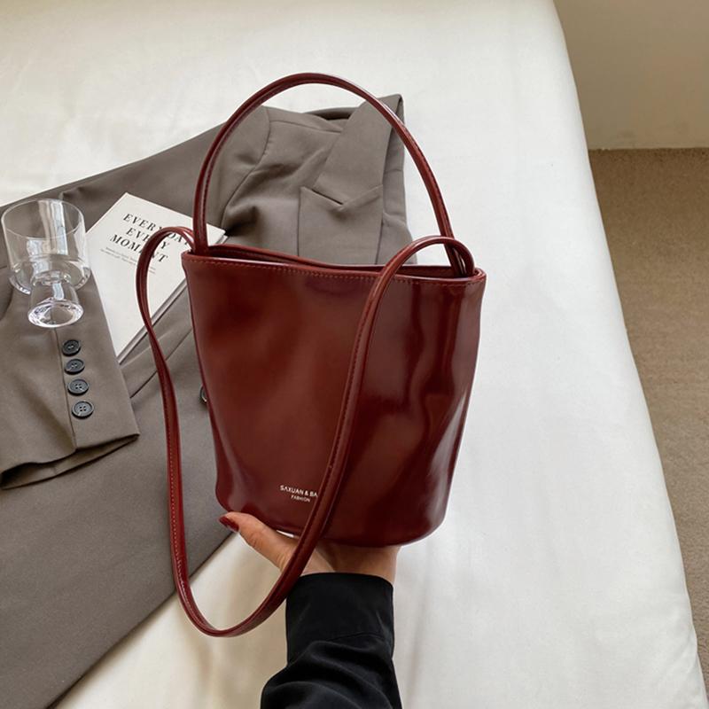 Сумки-ведра с красными буквами в стиле ретро для женщин, универсальная сумка через плечо, монохромные женские сумки для покупок и путешествий, новые