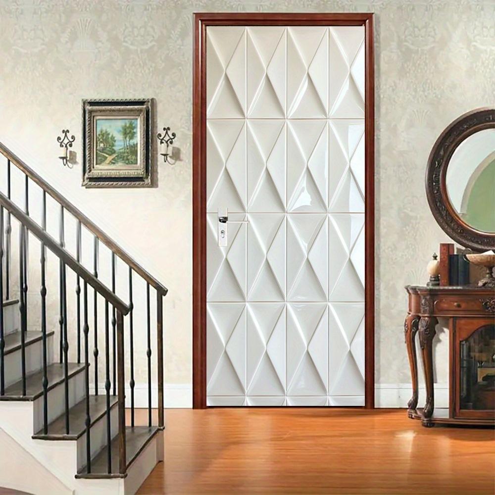 1 шт. Современная геометрическая белая плитка наклейка на дверь, съемная бумажная наклейка на стену, абстрактный художественный узор для спальни, современный прямоугольный дверной постер