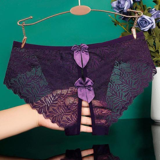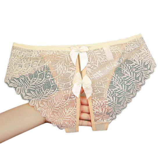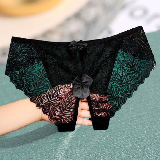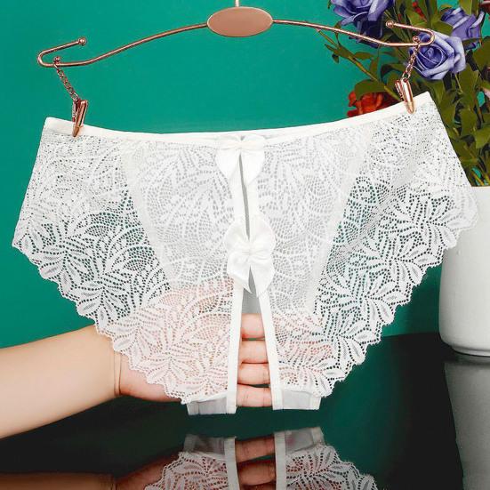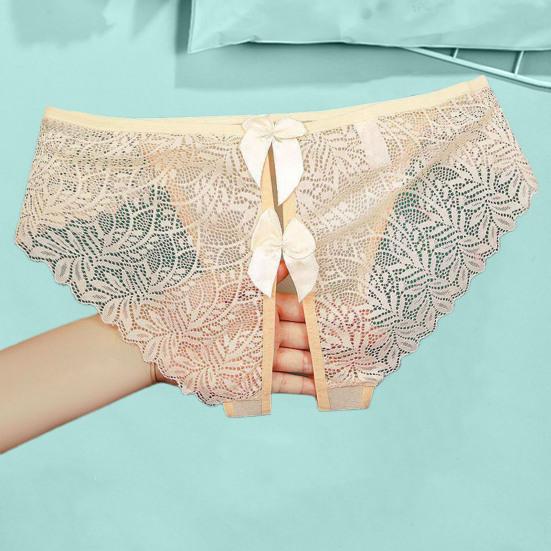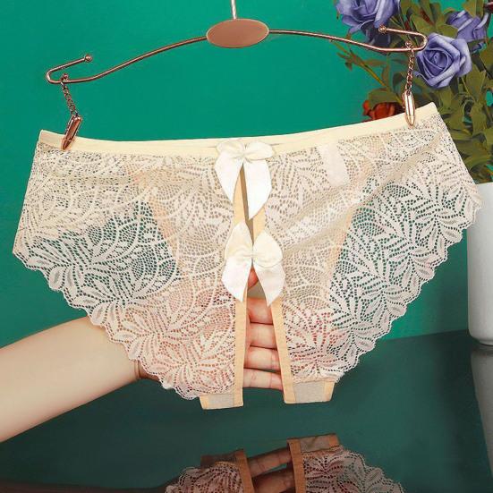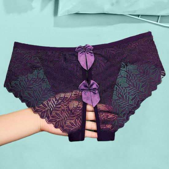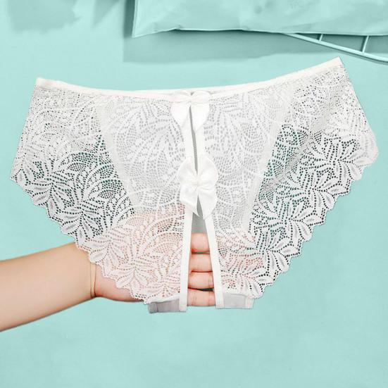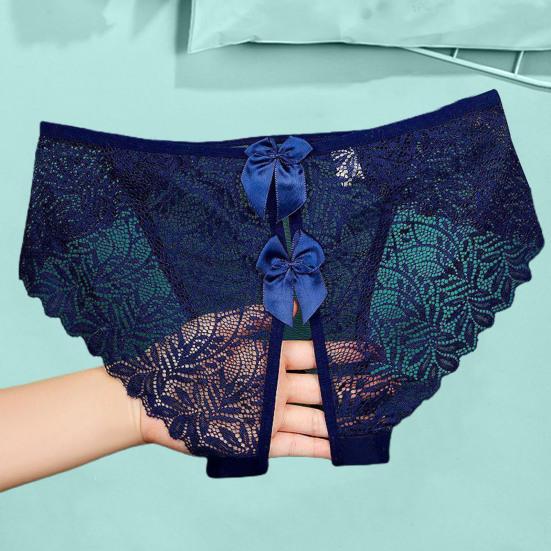 Обладая модным дизайном с замысловатыми кружевными деталями и изысканным украшением в виде банта, эти трусики демонстрируют открытый дизайн, который добавляет нотку смелого соблазнения. Бесшовный кружевной край и тонкая сетчатая марля создают слабо видимый эффект, который усиливает ваше очарование.