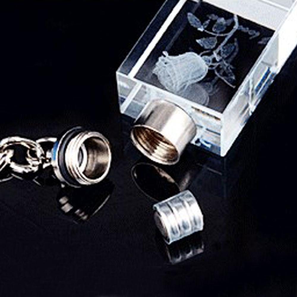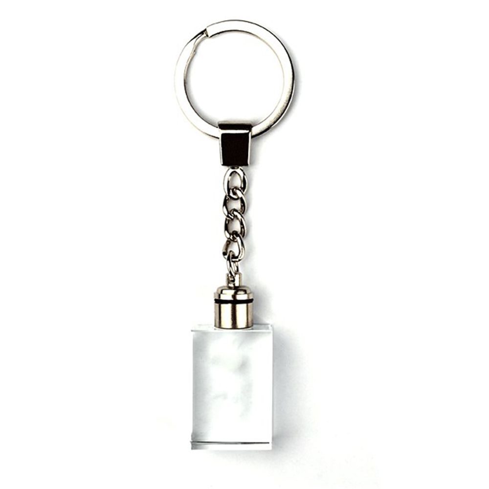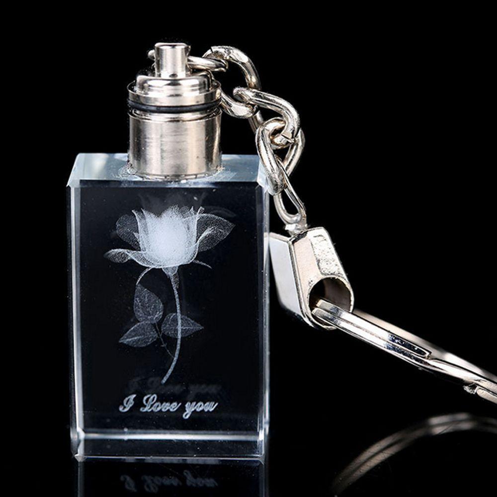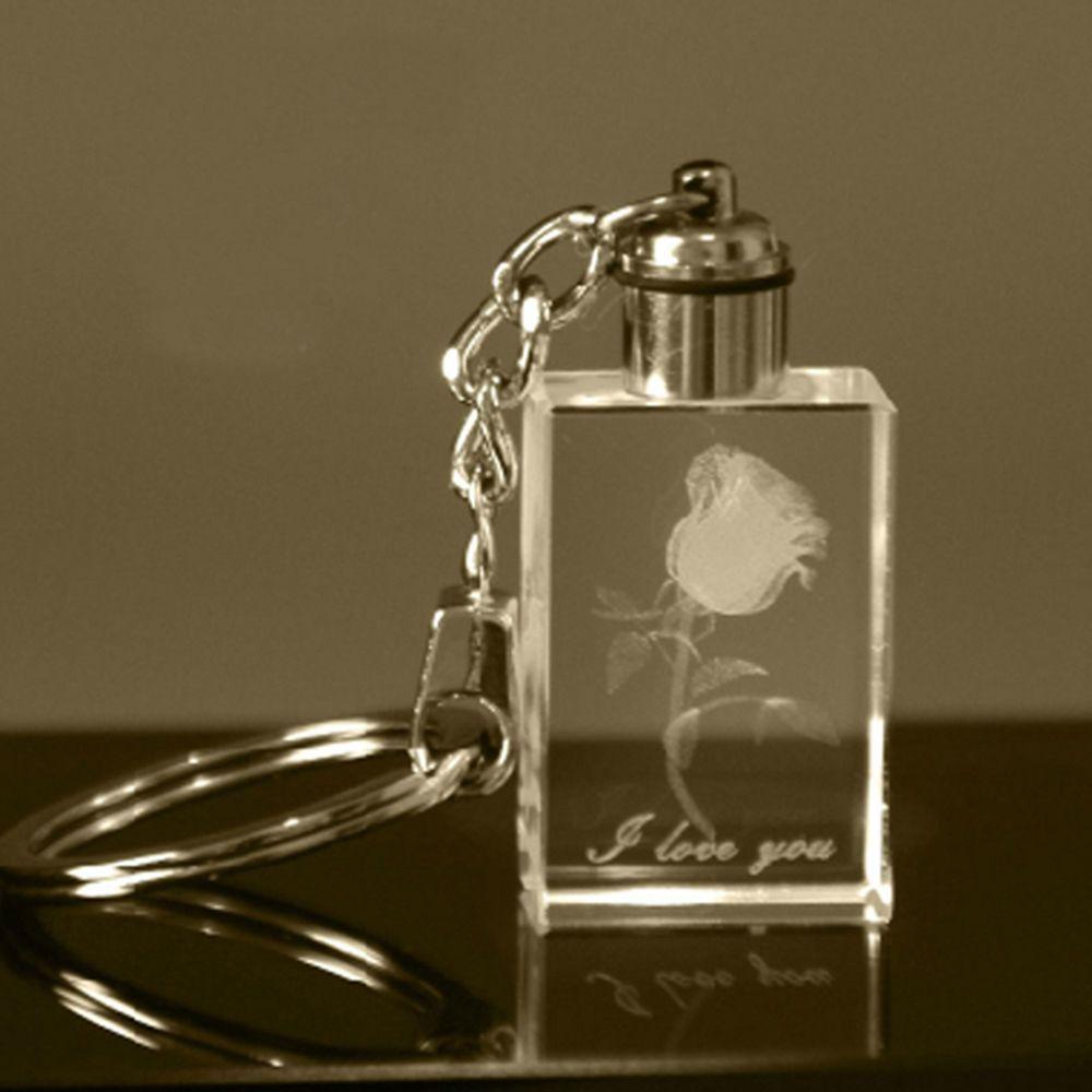 Cute New Charm Glass Gift LED Valentine's Day Blue Light Laser Engraved Key Chain Rose 3D Keyring