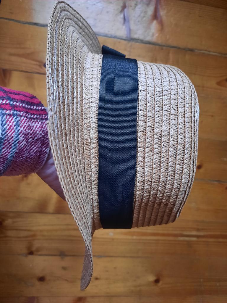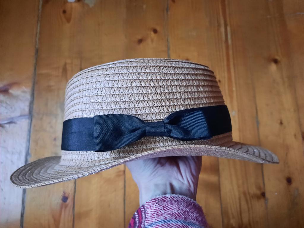 Пошита криво, поля идут волнами сильно в общем растроена, то что помята это ладно, возможно отпаривателем распрямить но кривость эту если не убрать- то совсем не носибельно, поля не прямые а как у панам волнообразные и ведет по разному, когда надеваешь её ведет ооочень сильно и топорщится сама формованная часть по голове, хотя размер не в притык, в объёме свободно( очень подошла к сумочке плетеной по цвету, но смотрится ужасно).пробовала под прес класть поля- ничего не изменилось, попробую отпарить и может быть накрахмалить но боюсь как бы зря не оказались старания, ширина полей по шляпе разная для наглядности положила деревянные доминошки, если не придумаю как переделать- придется пустить кому нибудь на реквизит на дачный забор)) просто делюсь своим опытом, как оно может быть.бант не приклеен, лента просто крутится по шляпе- это удобно что можно подходящего цвета ленту сменить, но вот такой казус, фото не передает всей картины как в реале оно.. оценку исправила т.к.открыла спор, предоставила доказательства и продавец вернул часть стоимости, буду думать как переделать. Желаю всем удачных покупок и никаких запарок чтоб небыло !