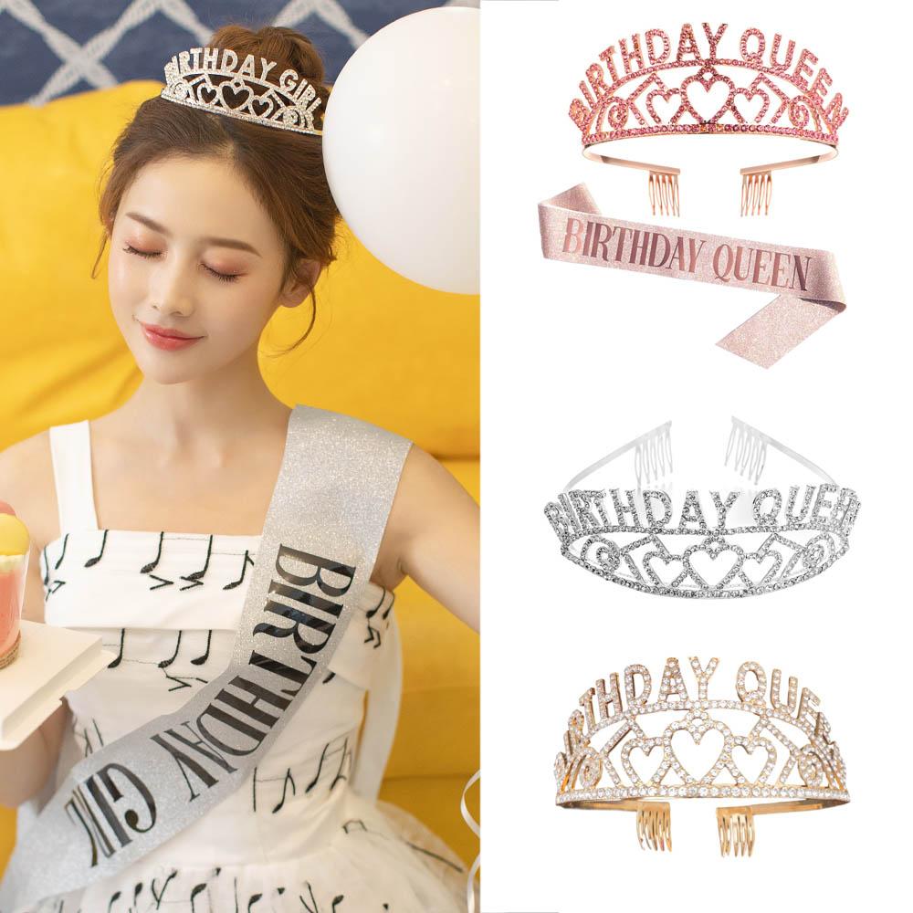 Торт Топпер День рождения Девочки Стразы День рождения Королева Корона Головная повязка Тиара Кристалл