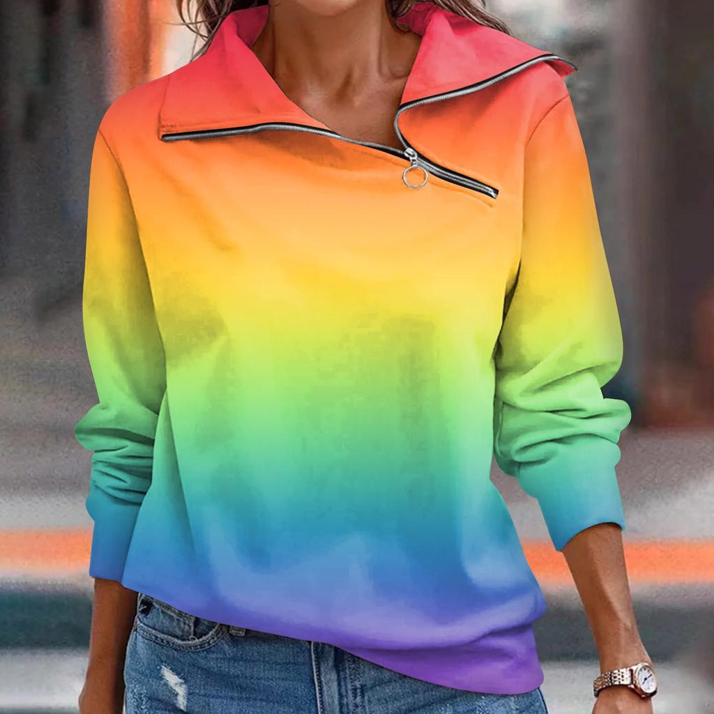 Женский осенне-зимний топ с застежкой-молнией, повседневный топ с длинными рукавами градиентного цвета