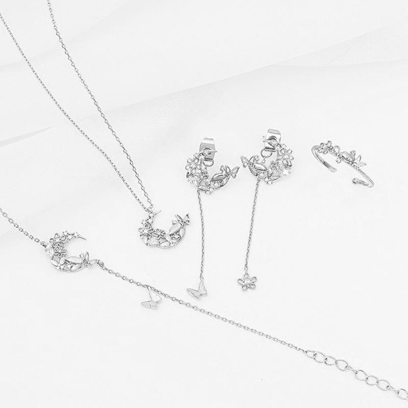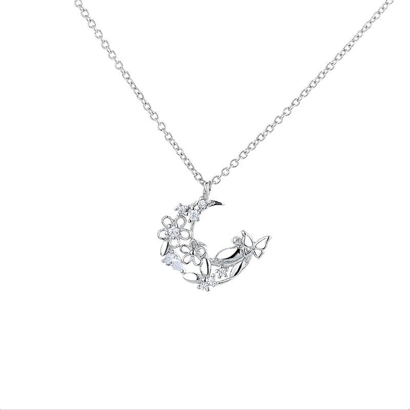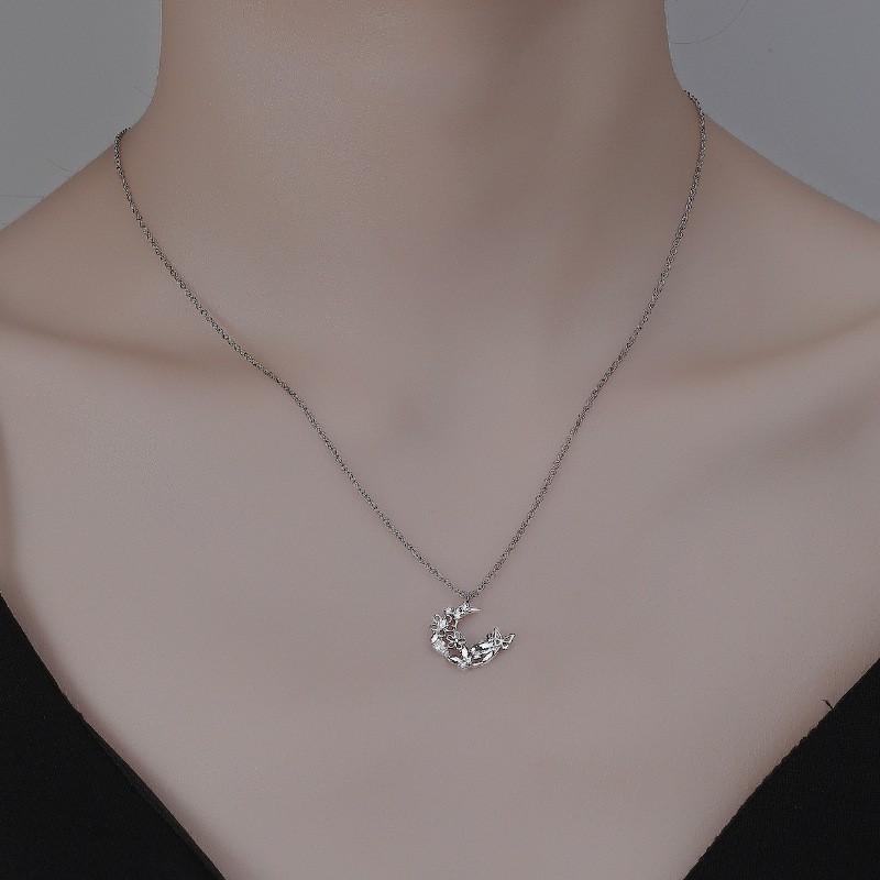 Маленькое свежее ожерелье с бабочкой и луной, короткое французское легкое роскошное муза-веер, маленькая цепочка с цветком и кошкой, бриллиантами на ключицу
