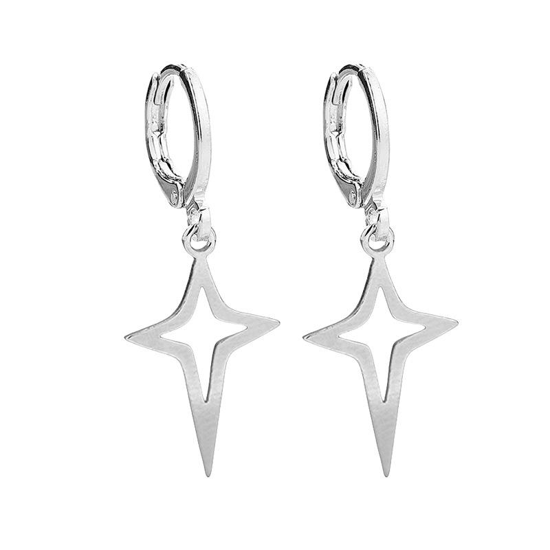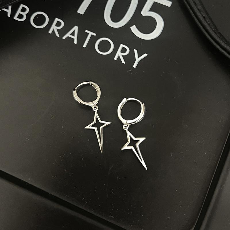 Серьги-крестики в форме звезд для мальчиков, корейский простой стиль, нейтральные и красивые пряжки в форме звезд, серьги-четырехугольные звезды.