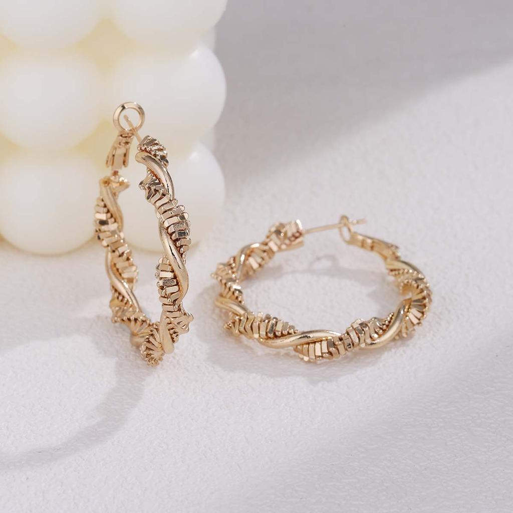 Модные витые золотые серьги «Темперамент» Женские модные витые круглые серьги Персонализированные геометрические серьги Flow